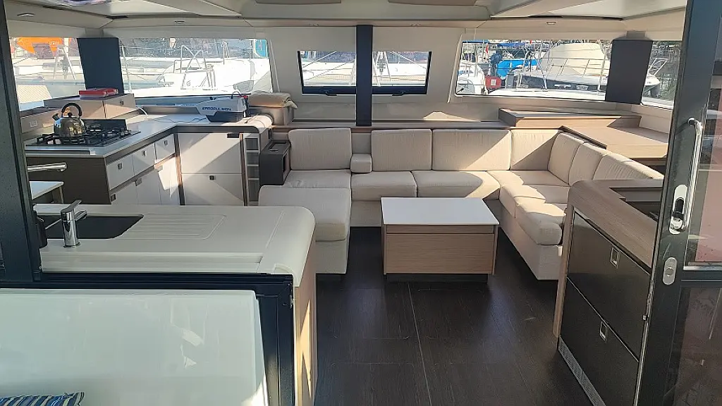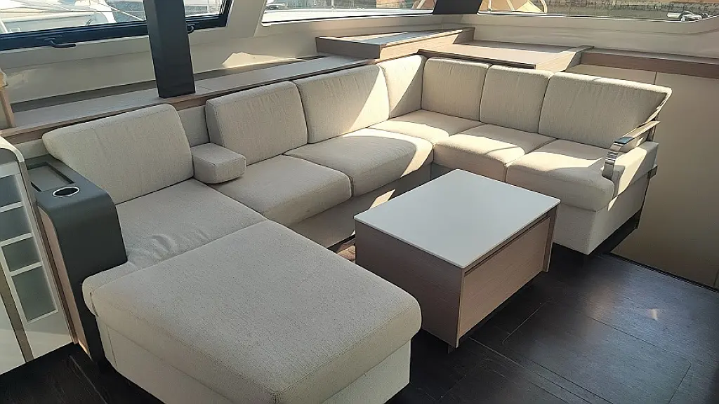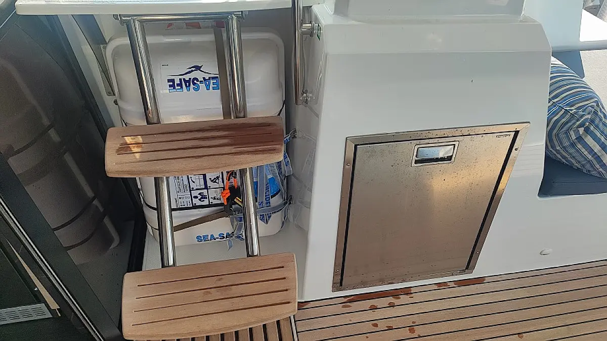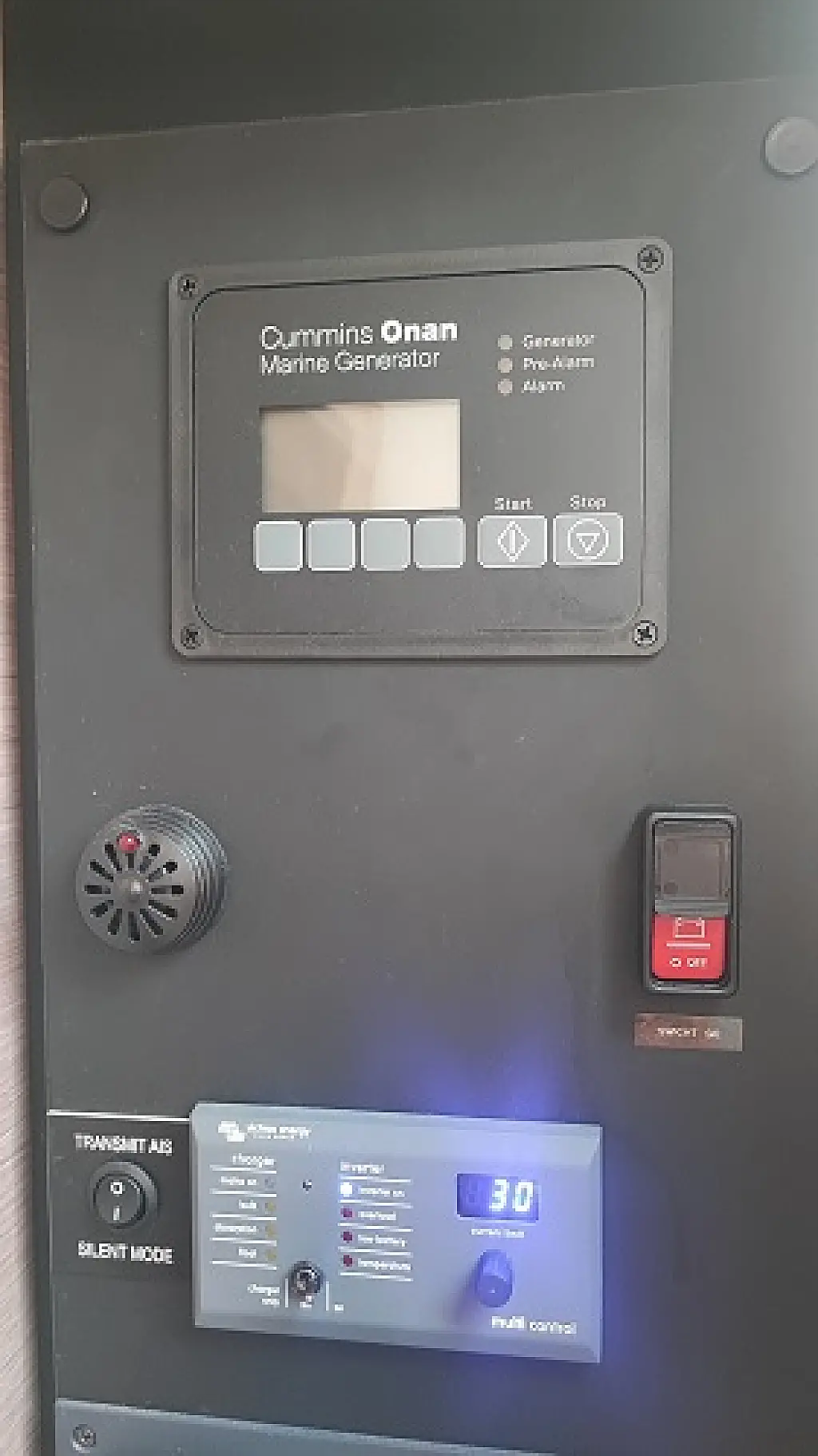 Kühlschrank, Beiboot, Cockpit-Kissen, Elektrische Toilette, Teak Cockpit, Außenbordmotor, Elektrische Winch (Segel), Generator, Klimaanlage, Heizung