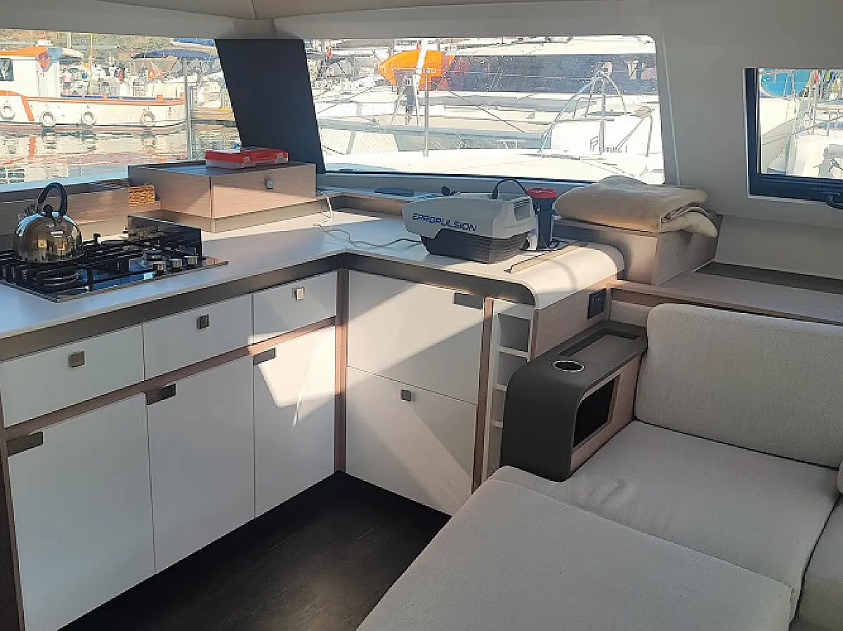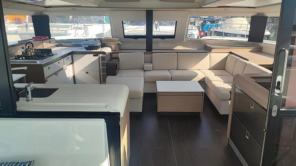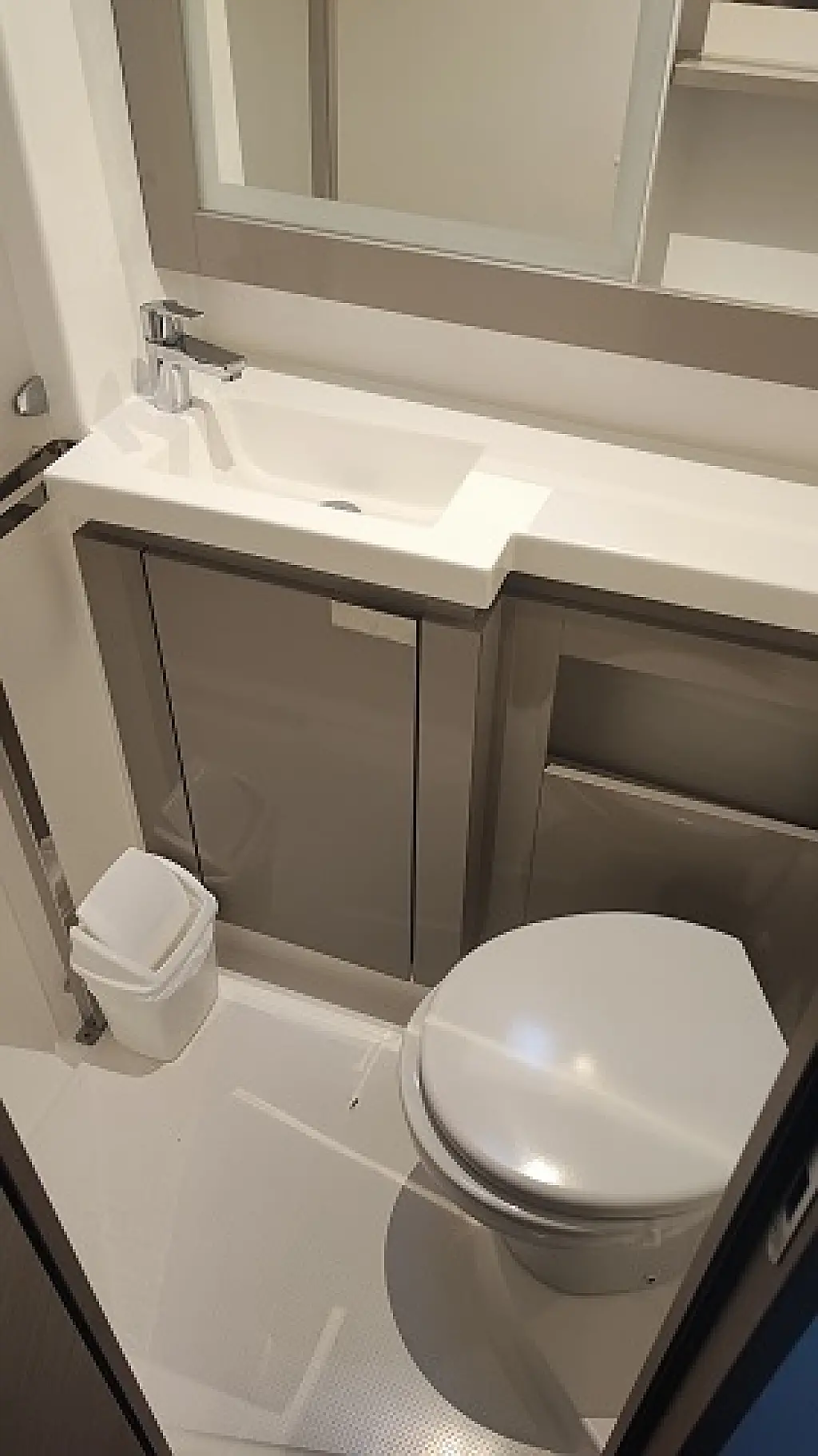 Kühlschrank, Beiboot, Cockpit-Kissen, Elektrische Toilette, Teak Cockpit, Außenbordmotor, Elektrische Winch (Segel), Generator, Klimaanlage, Heizung