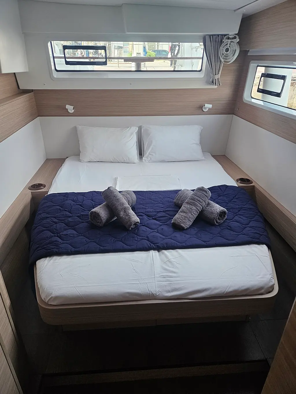 6 (4 double cabins+ convertible table in saloon+ 2 bow cabin with fun,usb port)