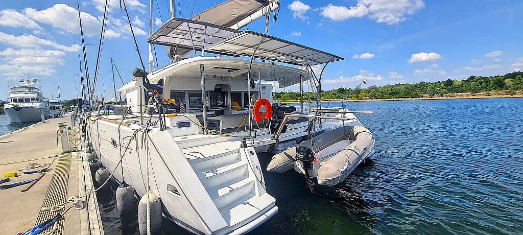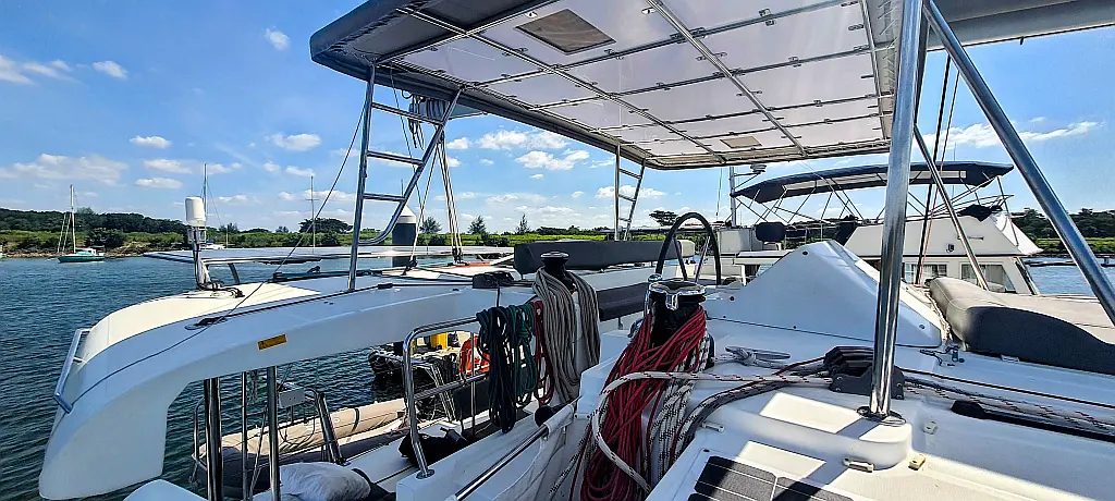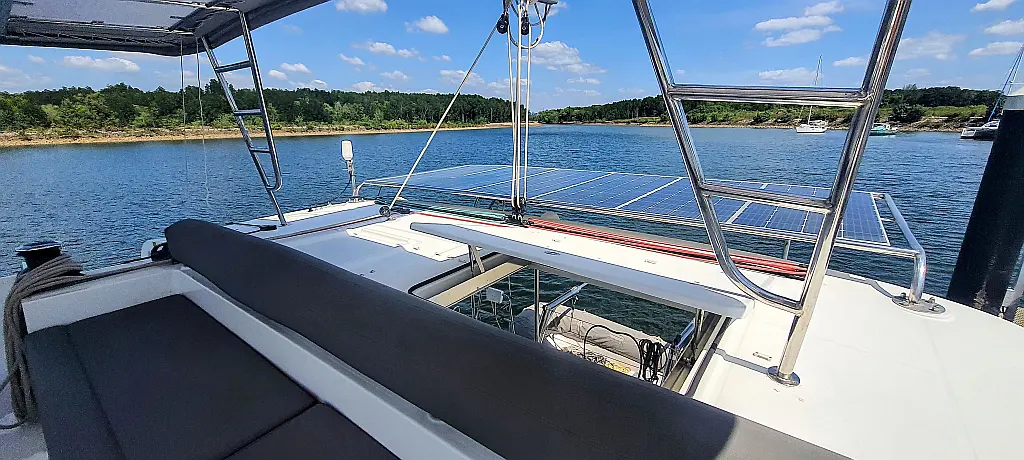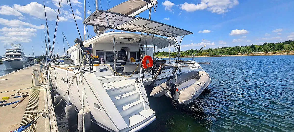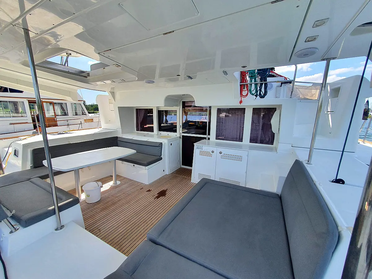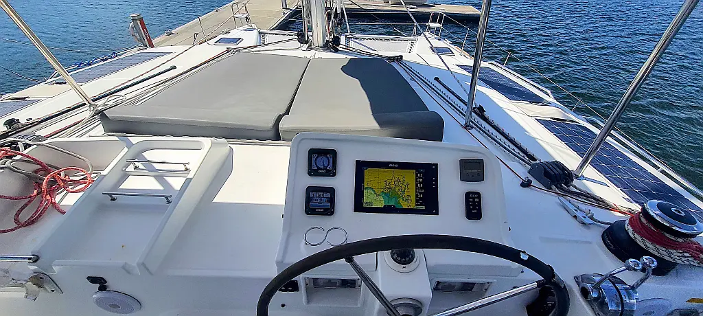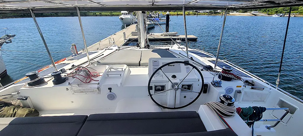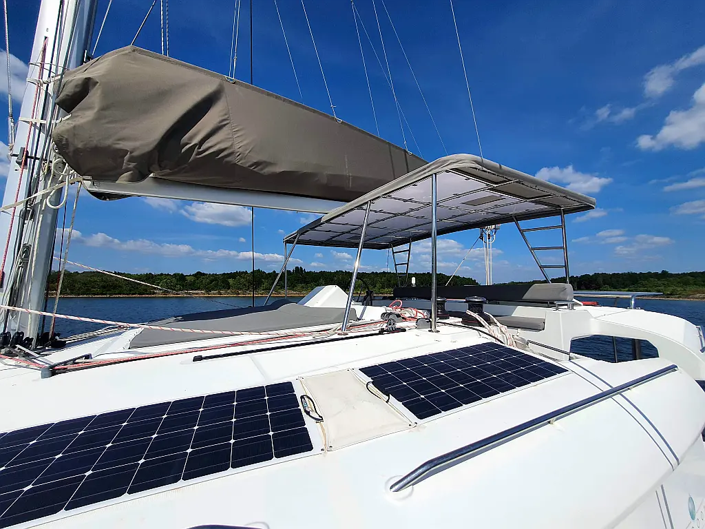 Lautsprecher im Cockpit, Wassermacher, Klimaanlage, Bimini, Kühlschrank, Generator, Solar-Panele, Außenbordmotor, Beiboot, Grill im Cockpit