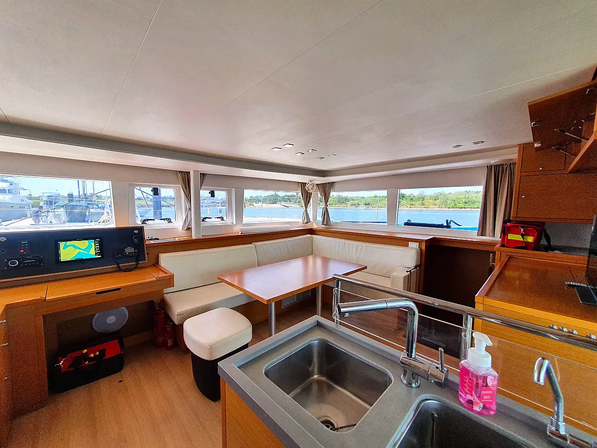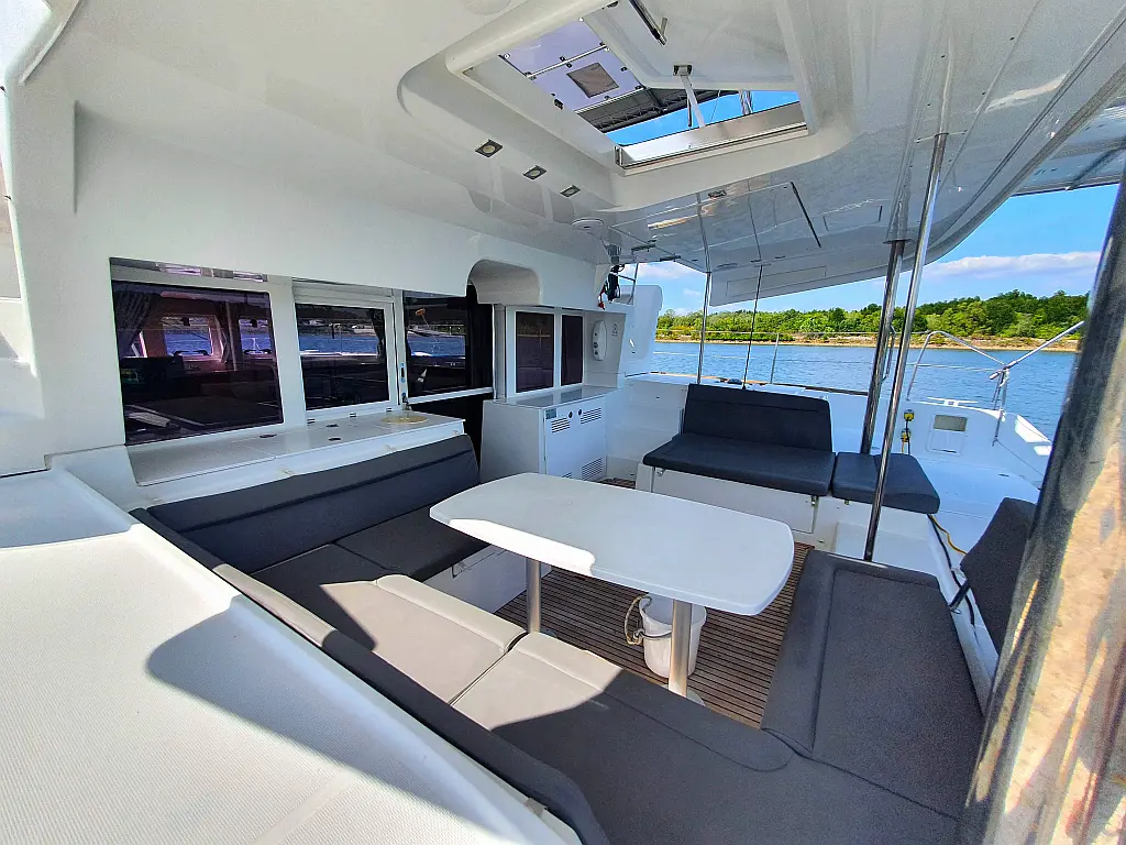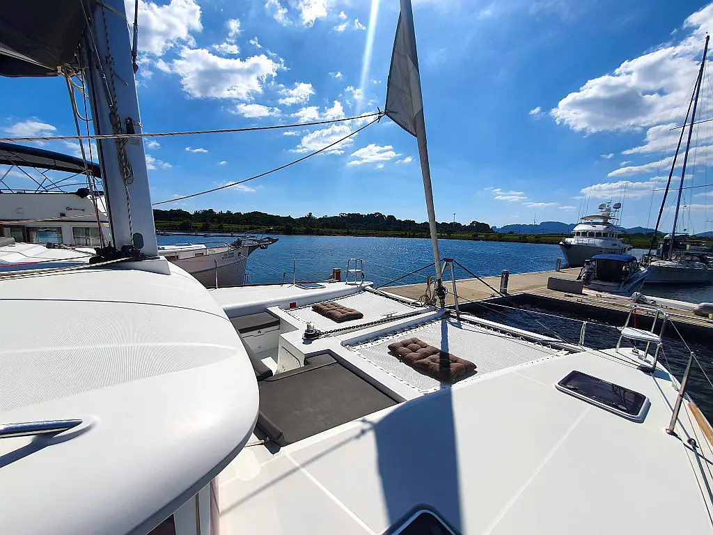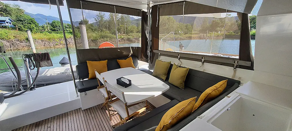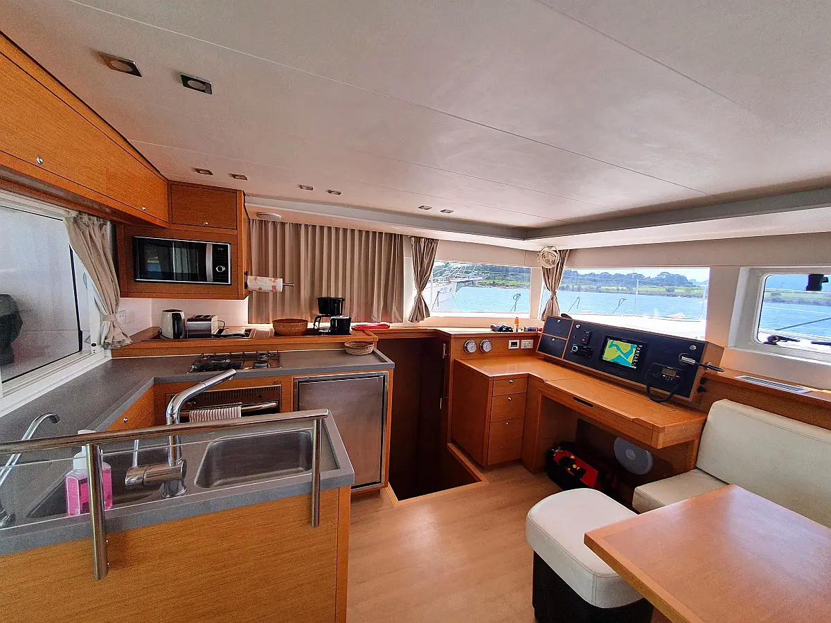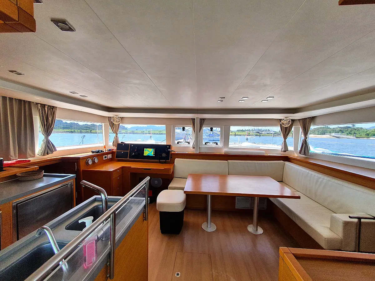 Lautsprecher im Cockpit, Wassermacher, Klimaanlage, Bimini, Kühlschrank, Generator, Solar-Panele, Außenbordmotor, Beiboot, Grill im Cockpit