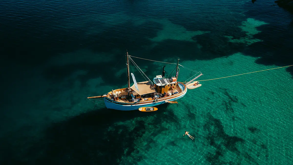 Beiboot, Außenbordmotor, Teakdeck, Bimini, Kühlschrank, Heizung, Wi-Fi und Internet, Solar-Panele, Inverter