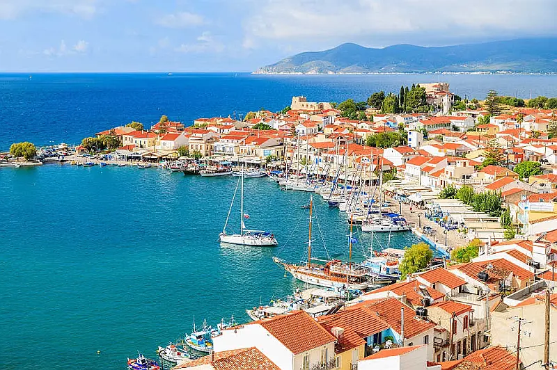 On the island of Samos, you should take a walk in the old quarter of Samos' port city, called Vathy. In the innumerable narrow streets, which are mostly shaded and pleasantly cool in summer, you will discover many well-preserved houses from the 19th century that will transport you back in time. There are also beautiful beaches on Samos, the best of which is the golden beach "Chryssi Ammos". Samos is also the birth island of Pythagoras, probably the highest reputed astrophysicist and mathematician from antiquity. At dinner on this island, you should definitely try the award-winning dessert wine, which is world-famous!