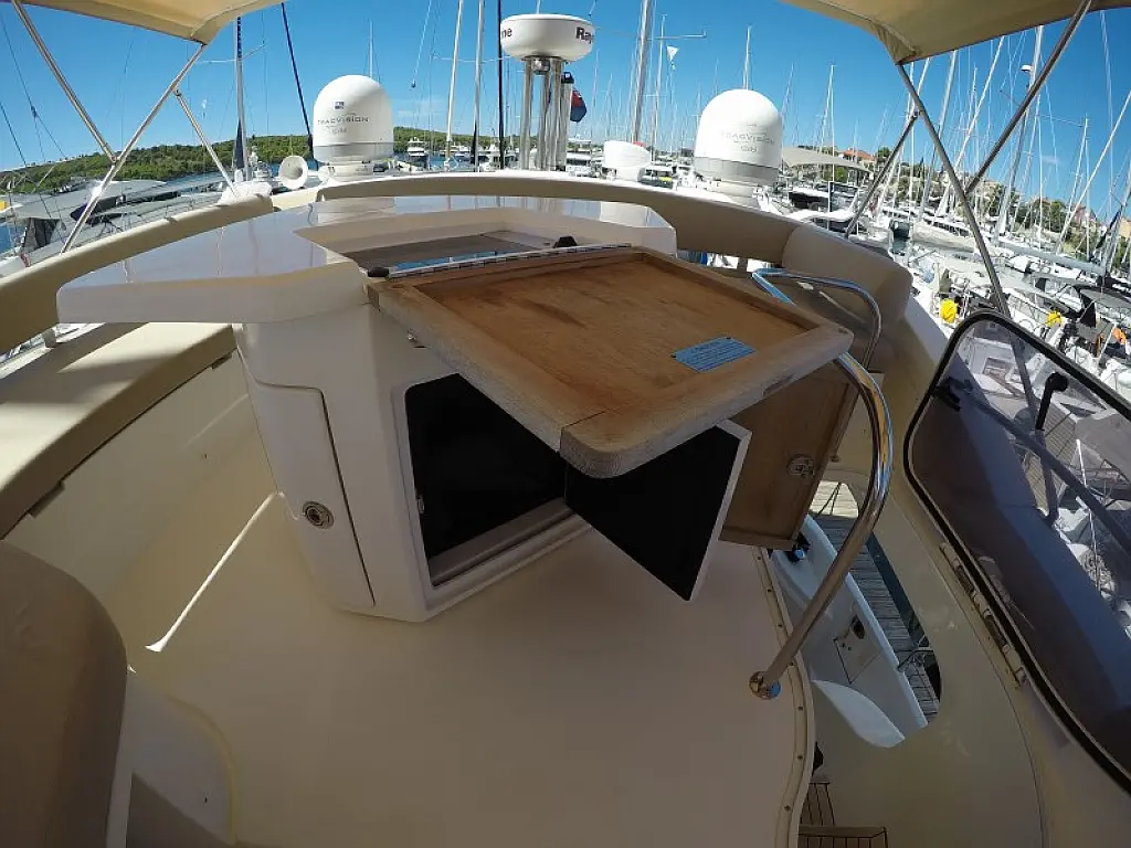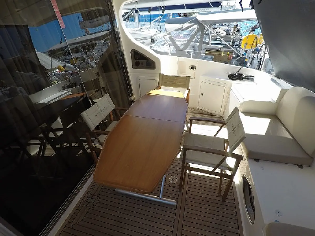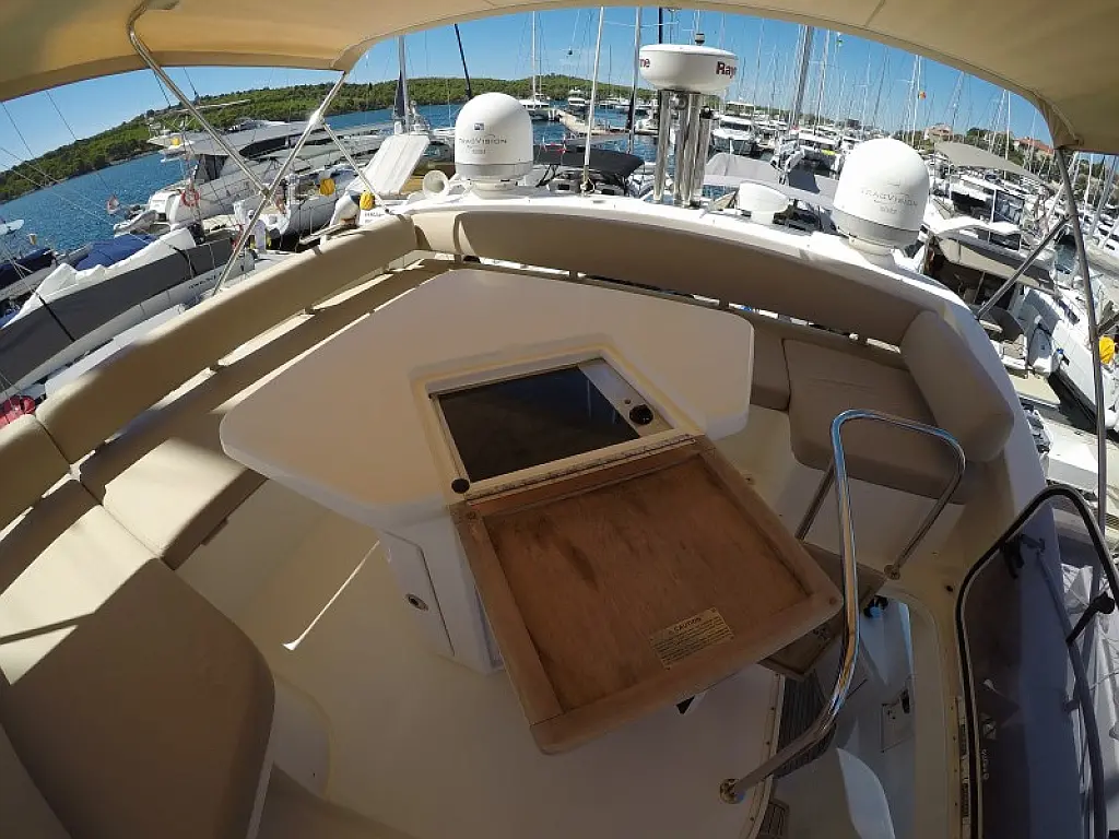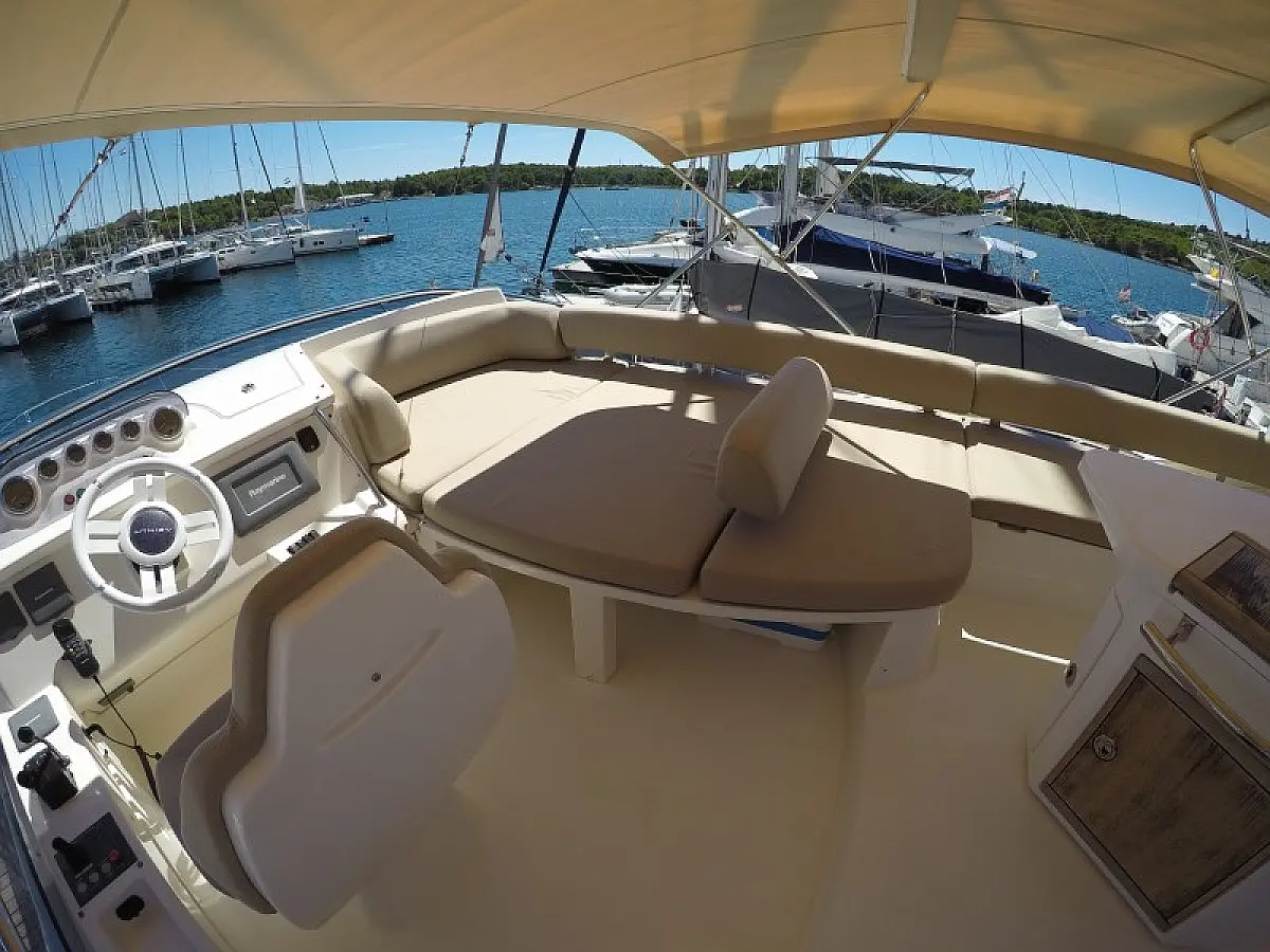 Generator, Heating, Air condition, Cockpit cushions, Outboard engine, Dinghy, Hydraulic gangway, Flybridge, Wi-Fi & Internet