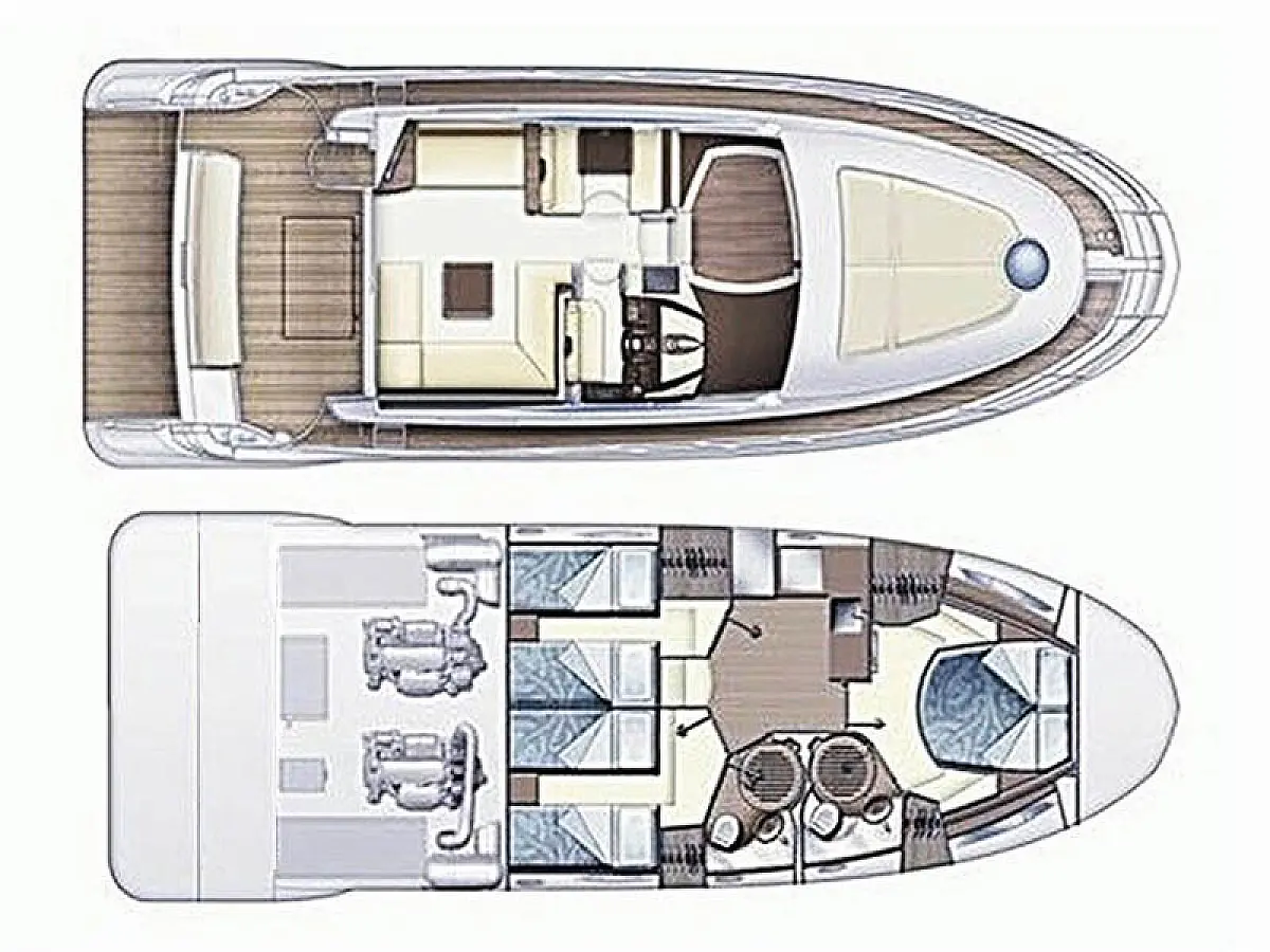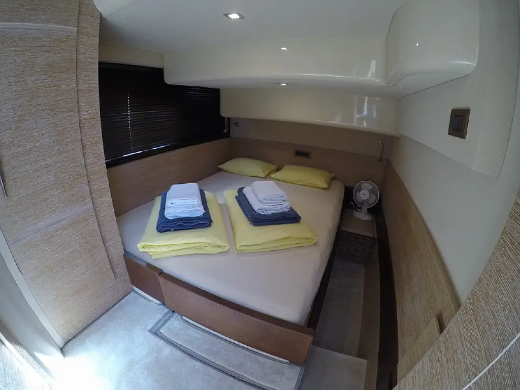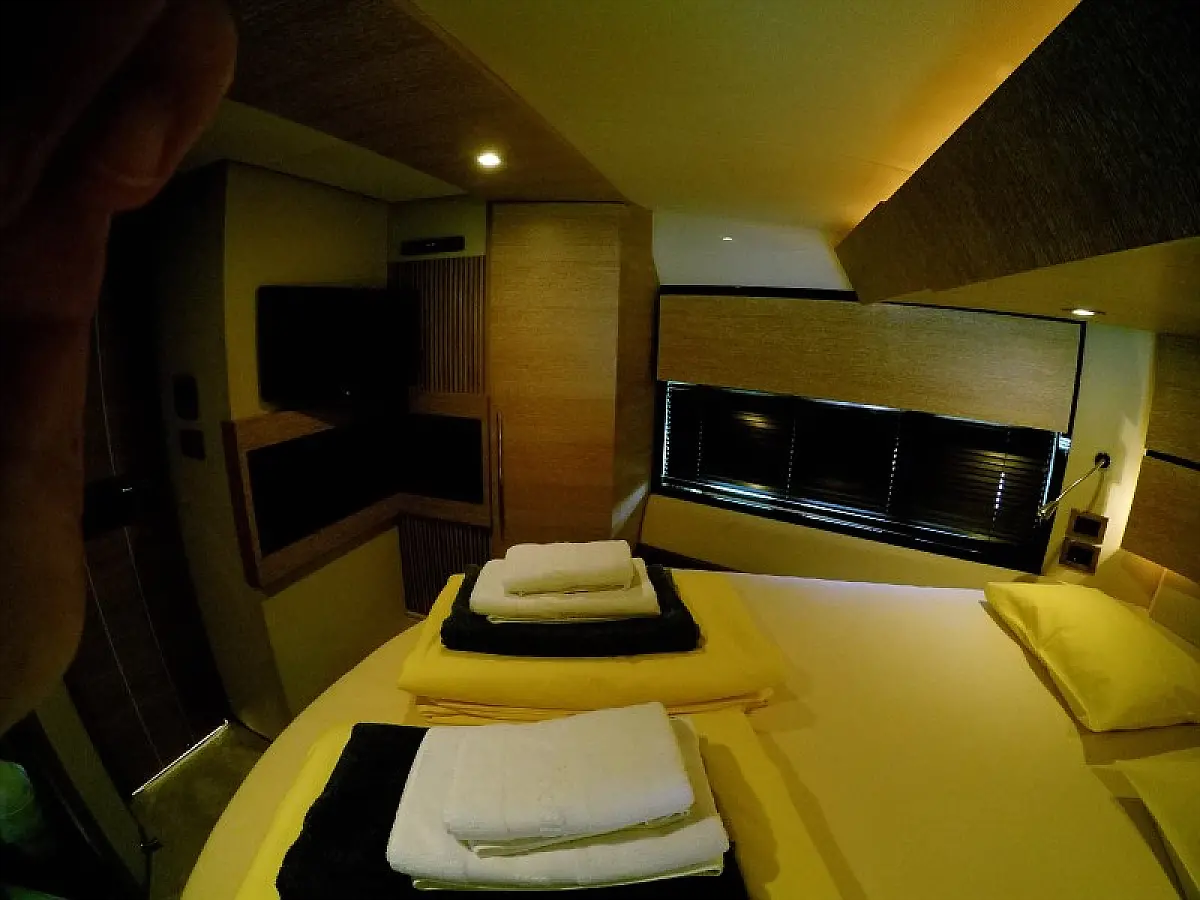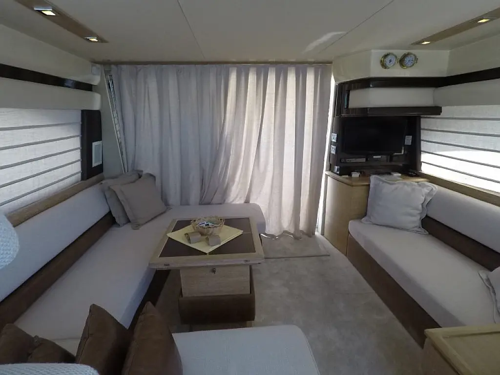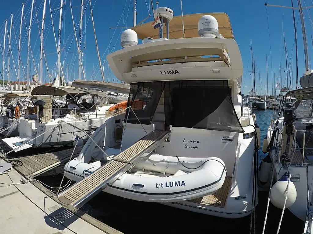 Generator, Heating, Air condition, Cockpit cushions, Outboard engine, Dinghy, Hydraulic gangway, Flybridge, Wi-Fi & Internet