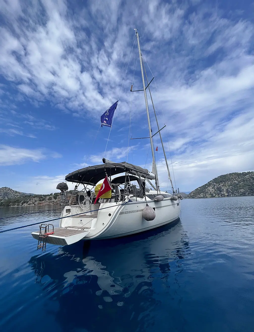 Inverter, Cockpit speakers, Electric toilet, Cockpit cushions, Solar Panels, Bimini, Sprayhood, Teak Cockpit, Refrigerator, Dinghy, Heating