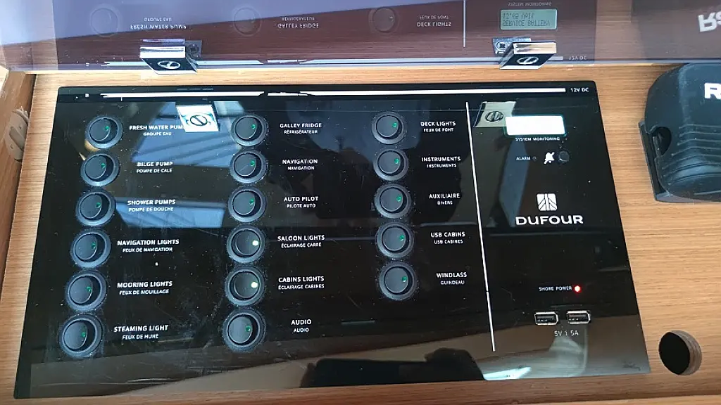 Refrigerator, Bimini, Cockpit cushions, Solar Panels, Inverter, Dinghy, Outboard engine, Heating