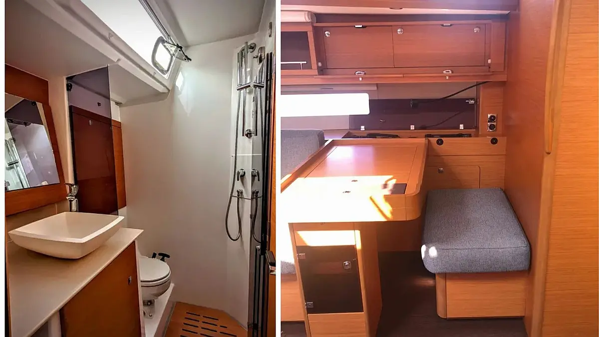 Sprayhood, Bimini, Teak Cockpit, Cockpit speakers, Inverter, Air condition, Dinghy, Refrigerator, Generator, Heating