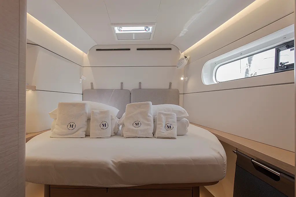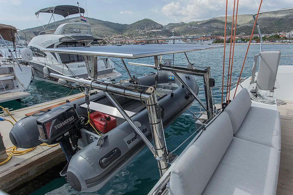 Air condition, Cockpit cushions, Cockpit speakers, Dinghy, Refrigerator, Electric toilet, Generator, Heating, Holding tank, Ice maker, Outboard engine, Solar Panels, Teak Cockpit, Water maker, Wi-Fi & Internet, Coffee maker