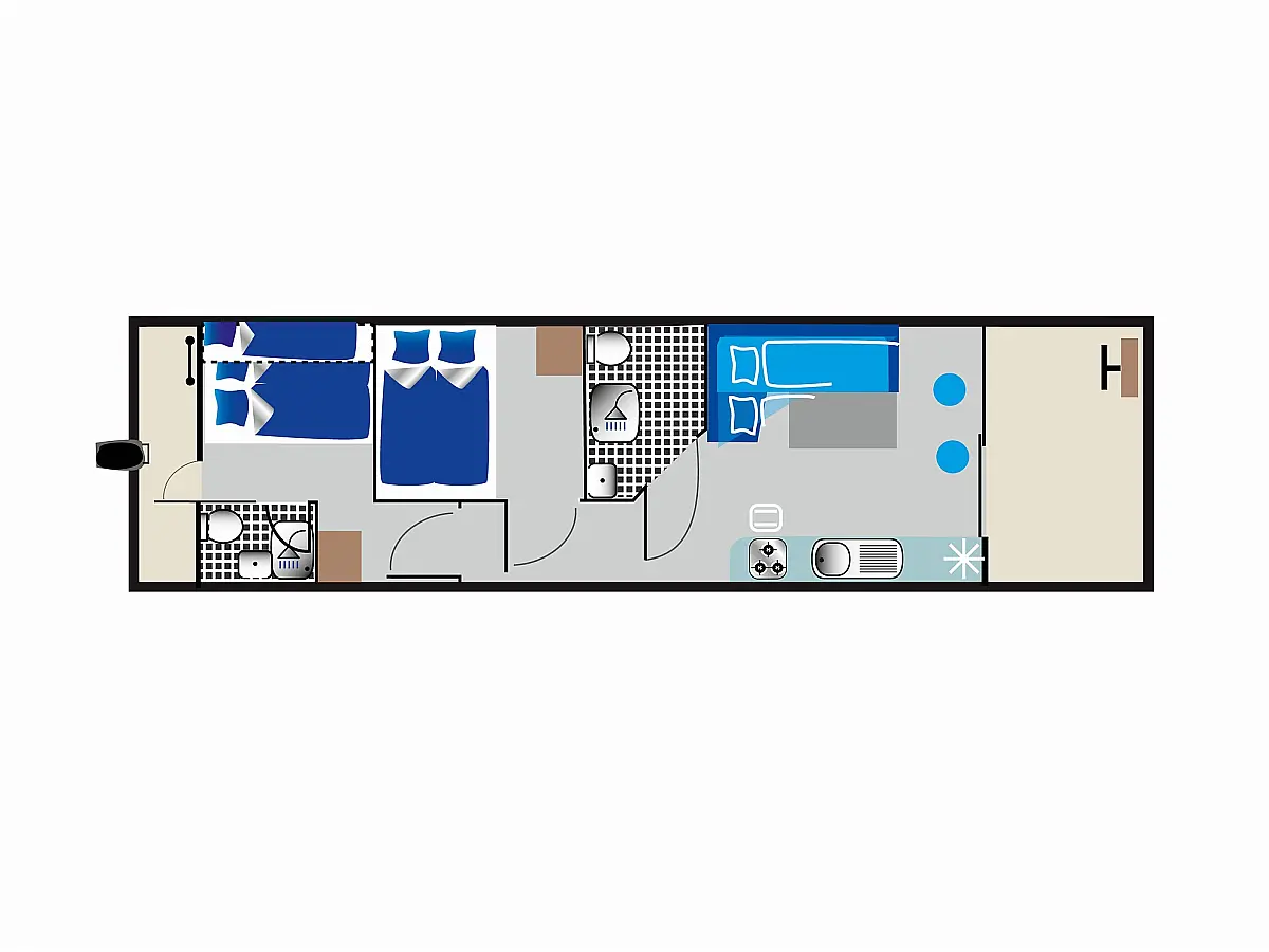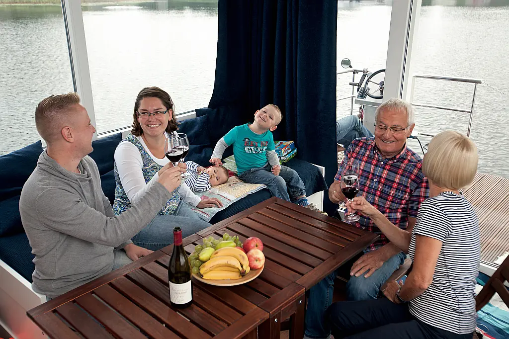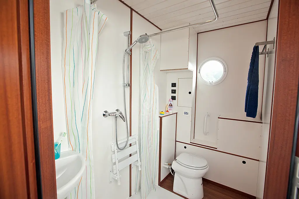 Swimming platform, Refrigerator, Heating, Electric toilet, Solar Panels