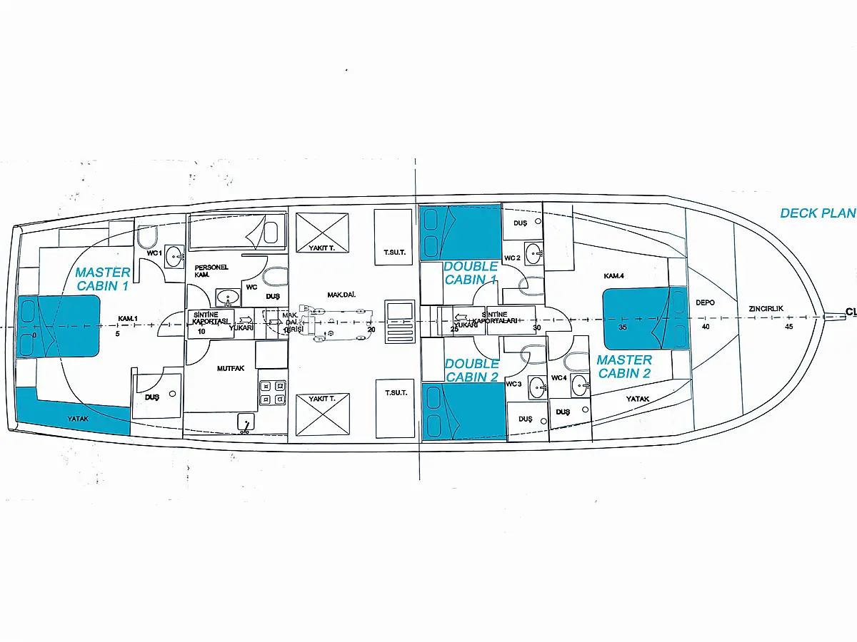 Teak Cockpit, Dinghy, Cockpit cushions, Coffee maker, Air condition, Generator, Electric toilet, Refrigerator, Teak deck