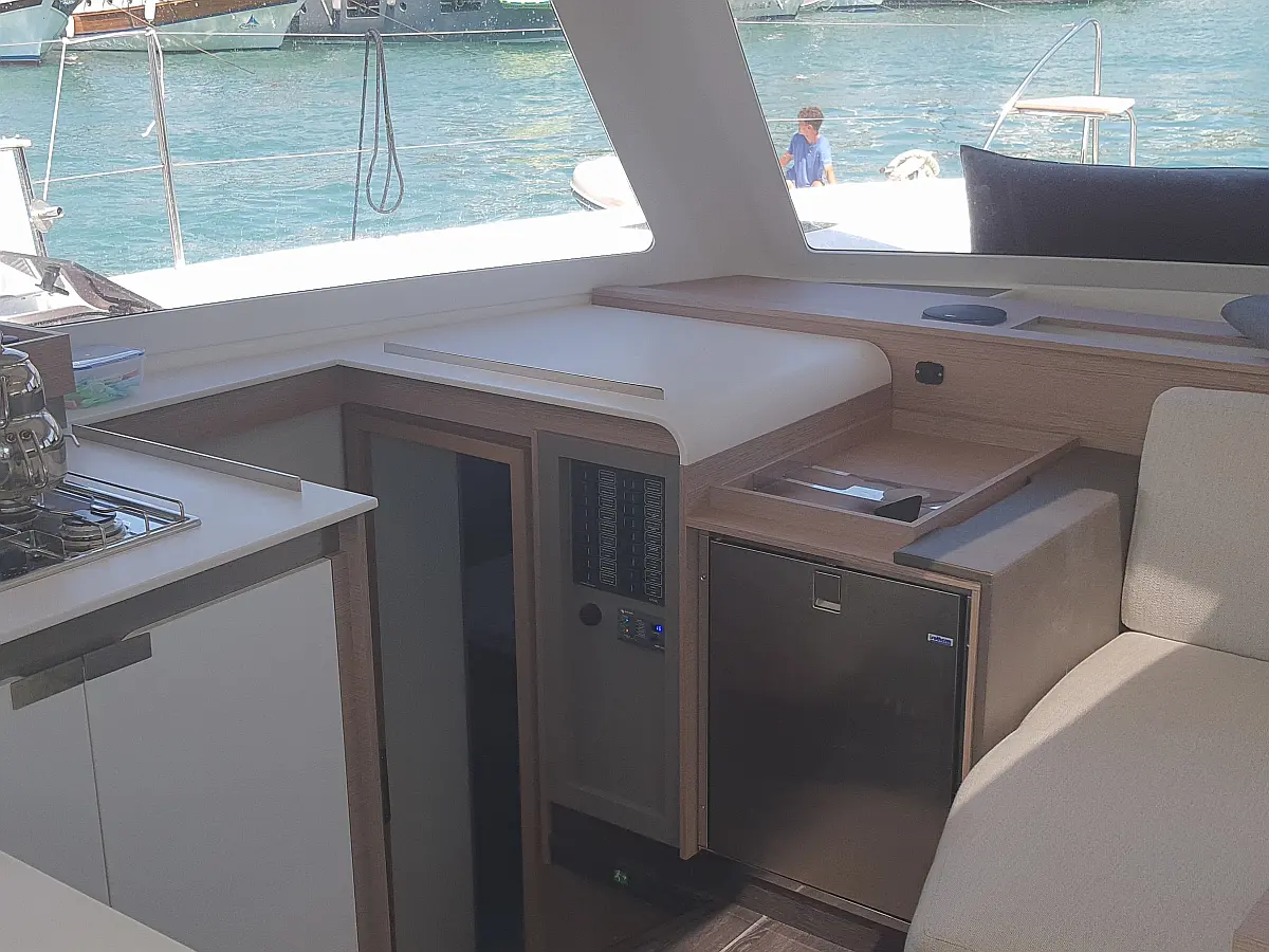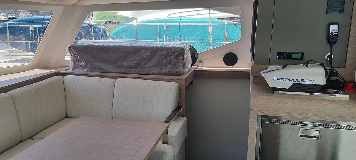 Solar Panels, Outboard engine, Refrigerator, Dinghy, Inverter, Electric toilet, Heating, Electric winches, Bimini