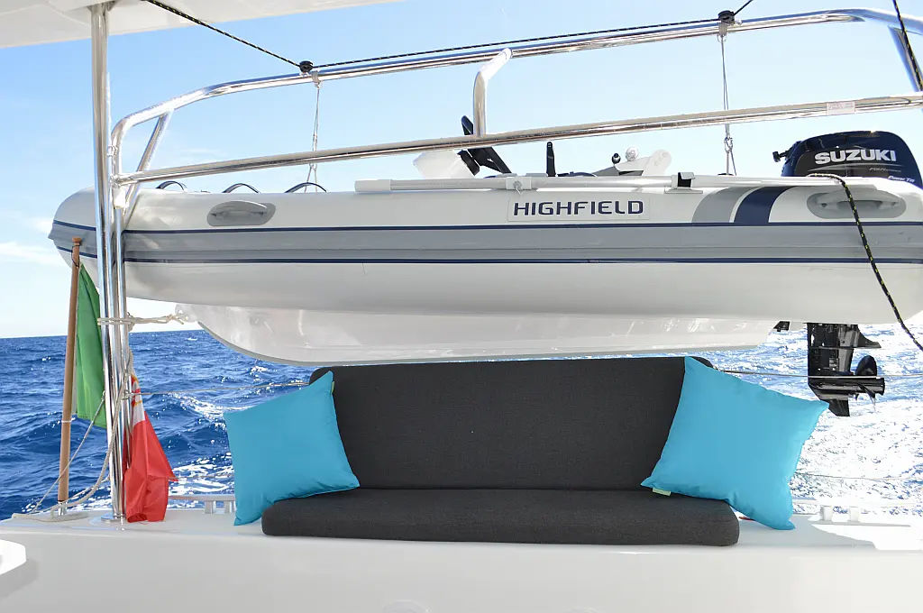 Dinghy, Outboard engine, Wi-Fi & Internet, Cockpit cushions, Water maker, Inverter