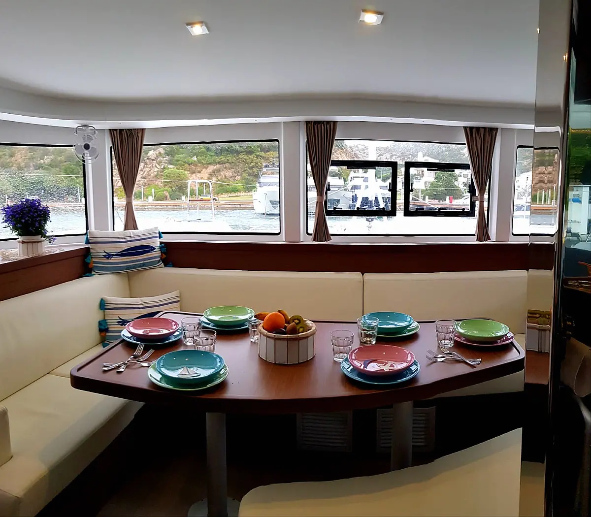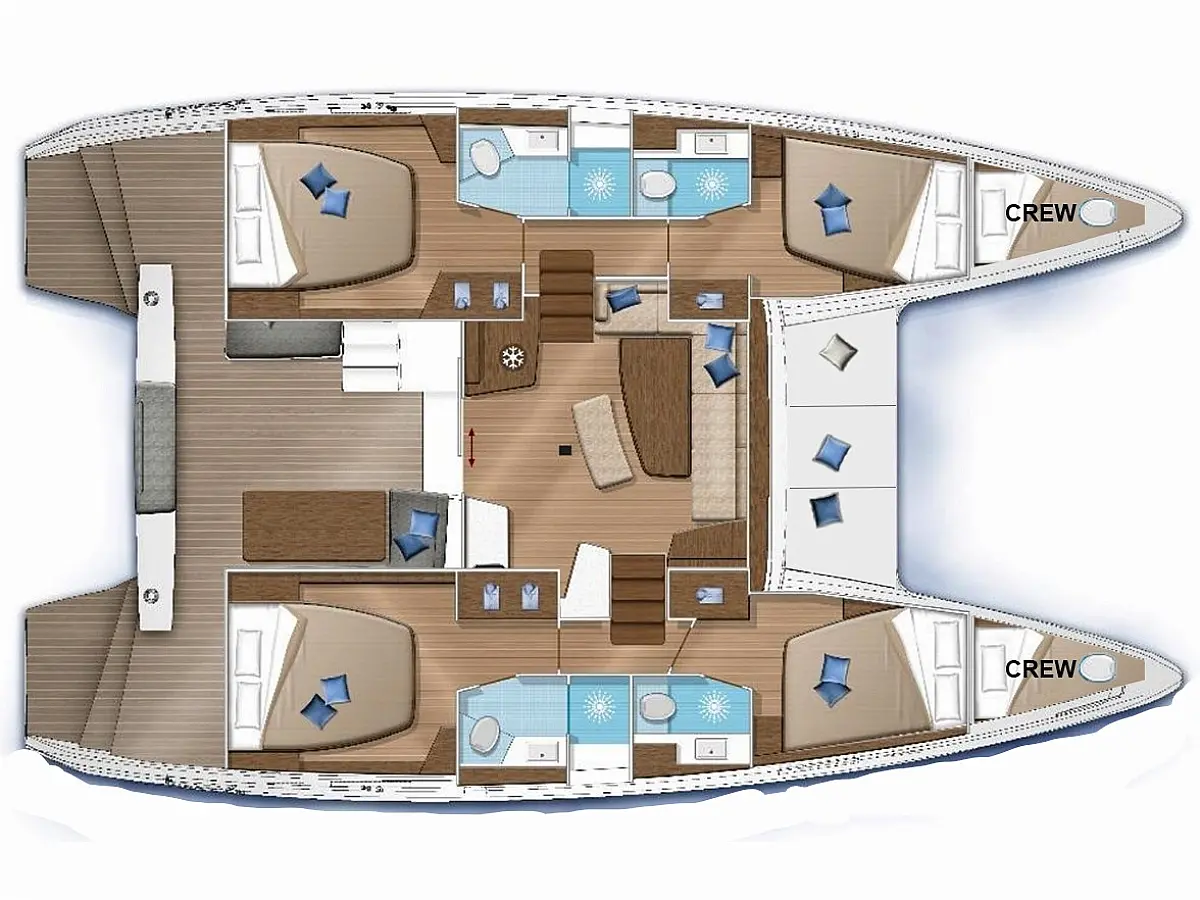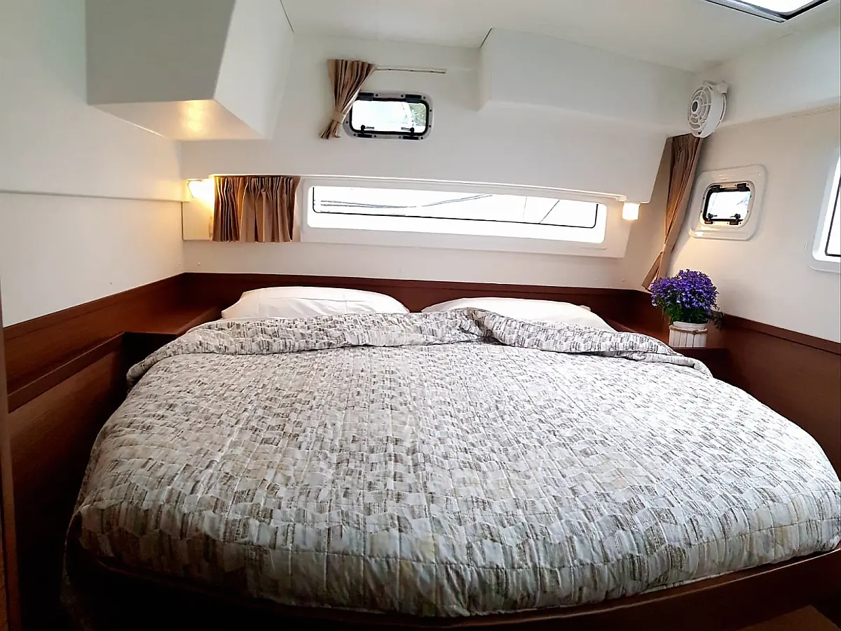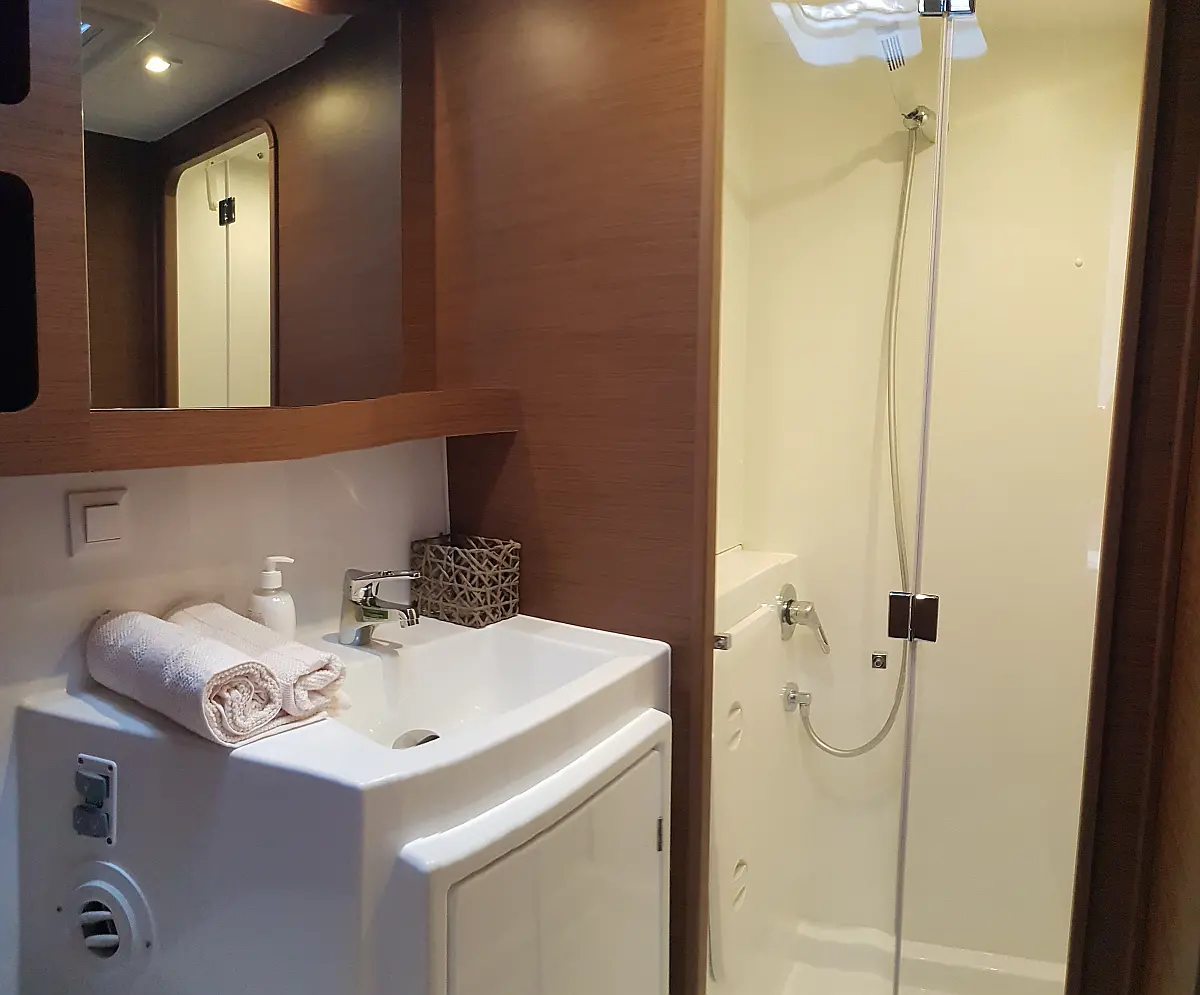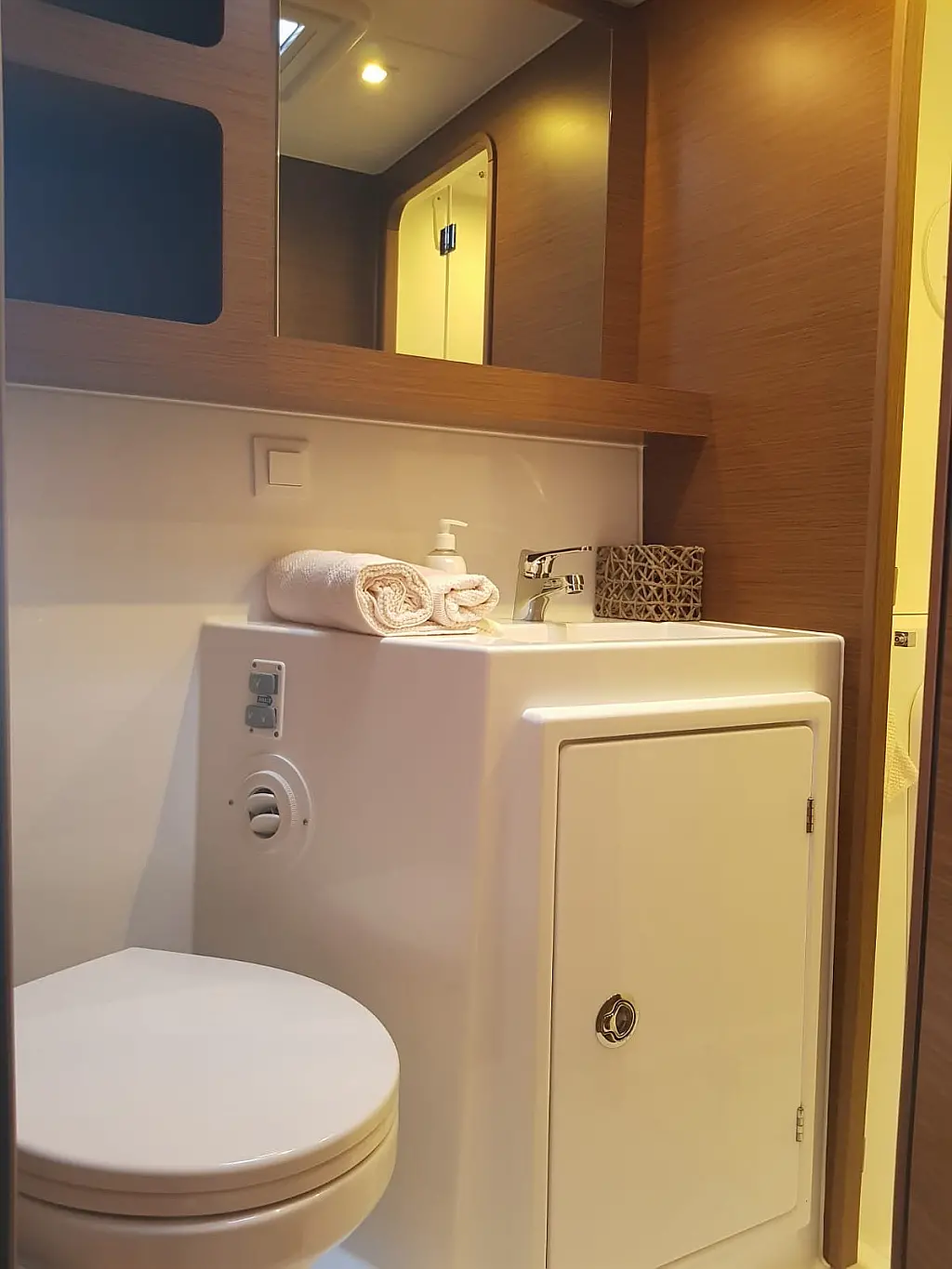 Electric winches, Bimini, Dinghy, Teak Cockpit, Cockpit cushions, Cockpit speakers, Inverter, Refrigerator, Generator, Air condition, Heating, Electric toilet, Water maker, Coffee maker, Holding tank