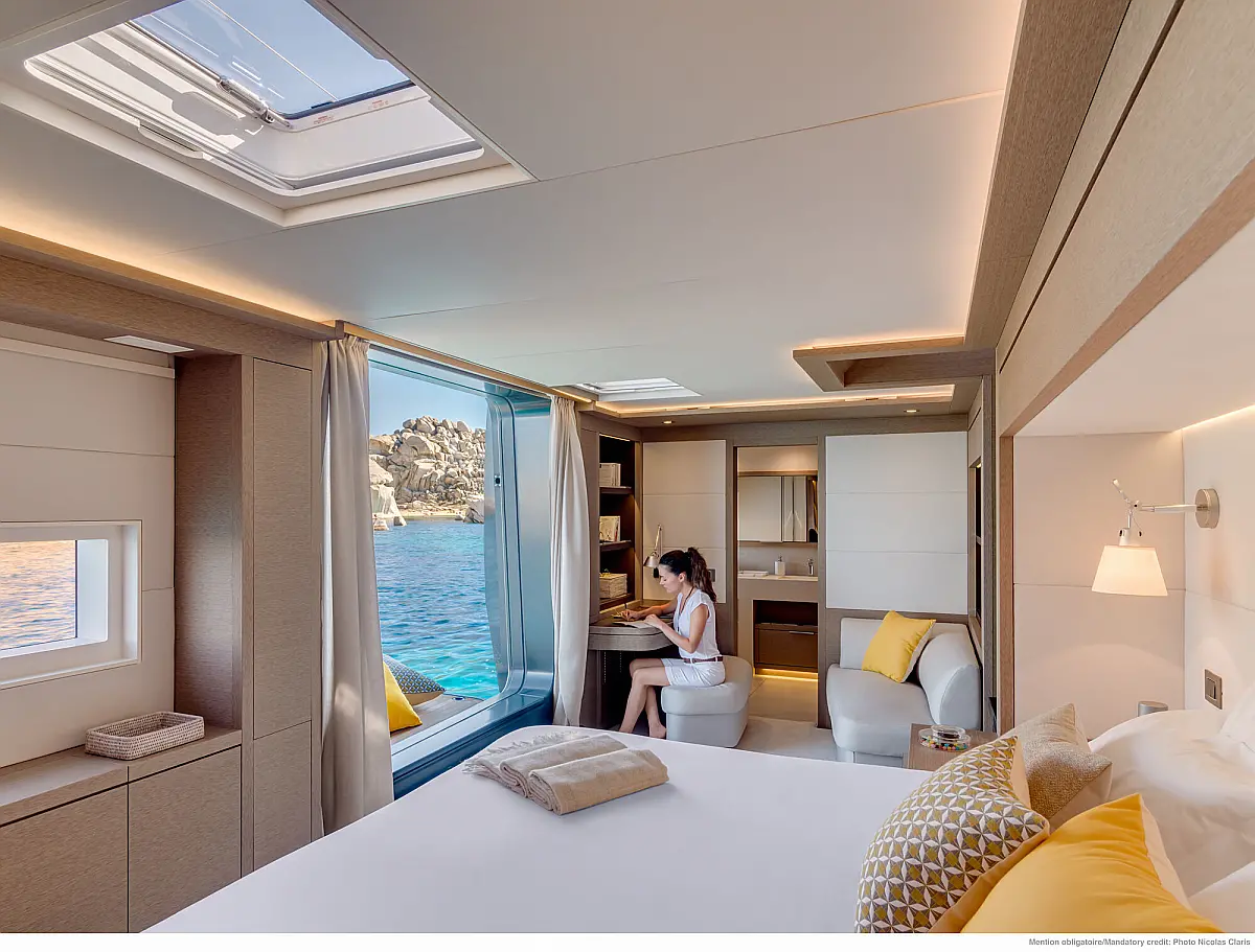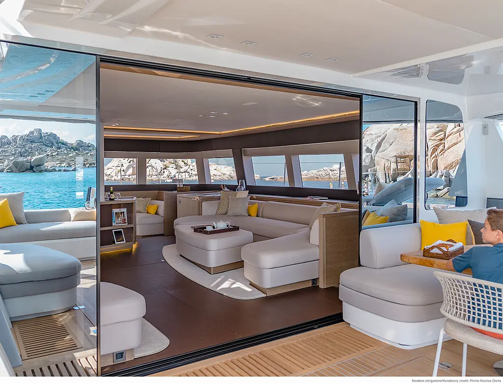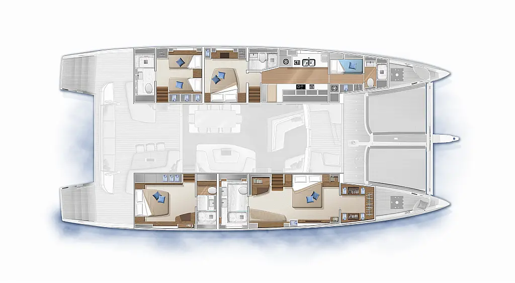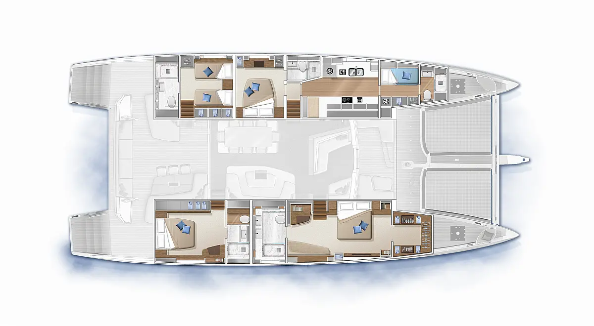 Air condition, Refrigerator, Water maker, Bimini, Cockpit speakers, Dinghy, Outboard engine, Flybridge, Teak deck, Inverter