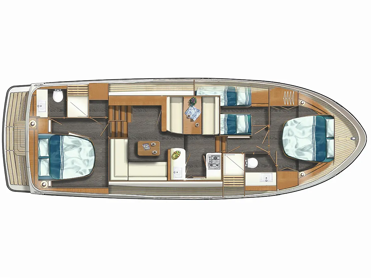 Teak deck, Coffee maker, Electric winches, Air condition, Generator, Refrigerator, Electric toilet, Inverter
