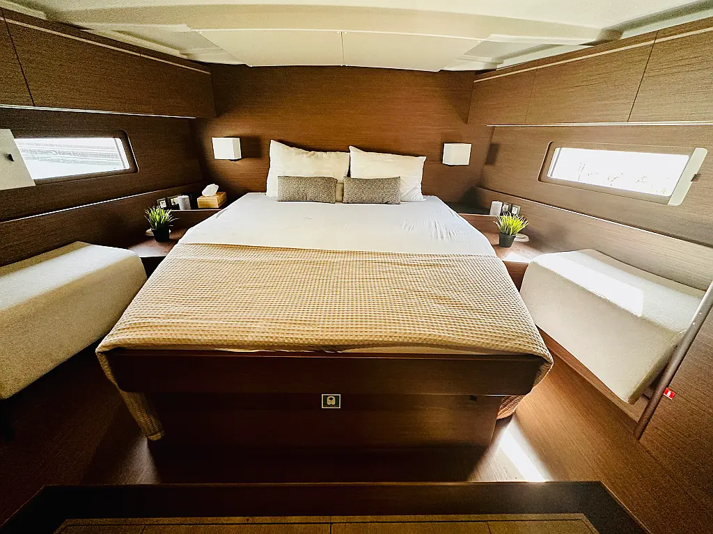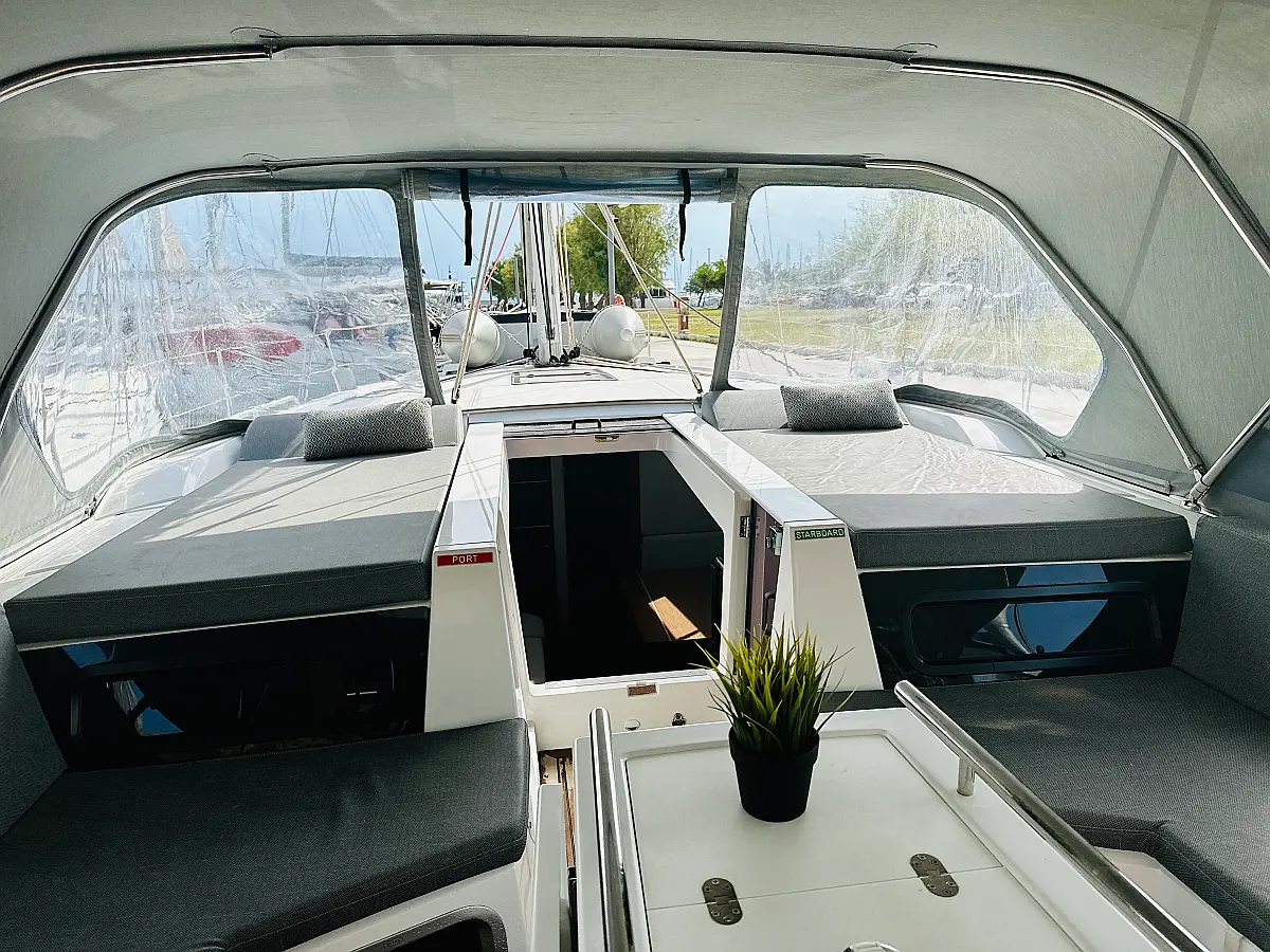 Cockpit speakers, Dinghy, Bimini, Sprayhood, Electric toilet, Holding tank, Inverter, Solar Panels, Refrigerator