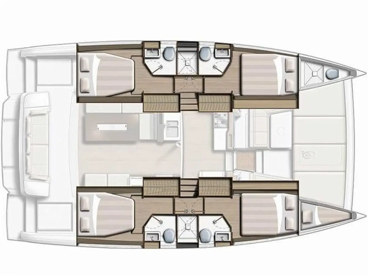 6 (4 double-bed cabins +2 bow cabins)