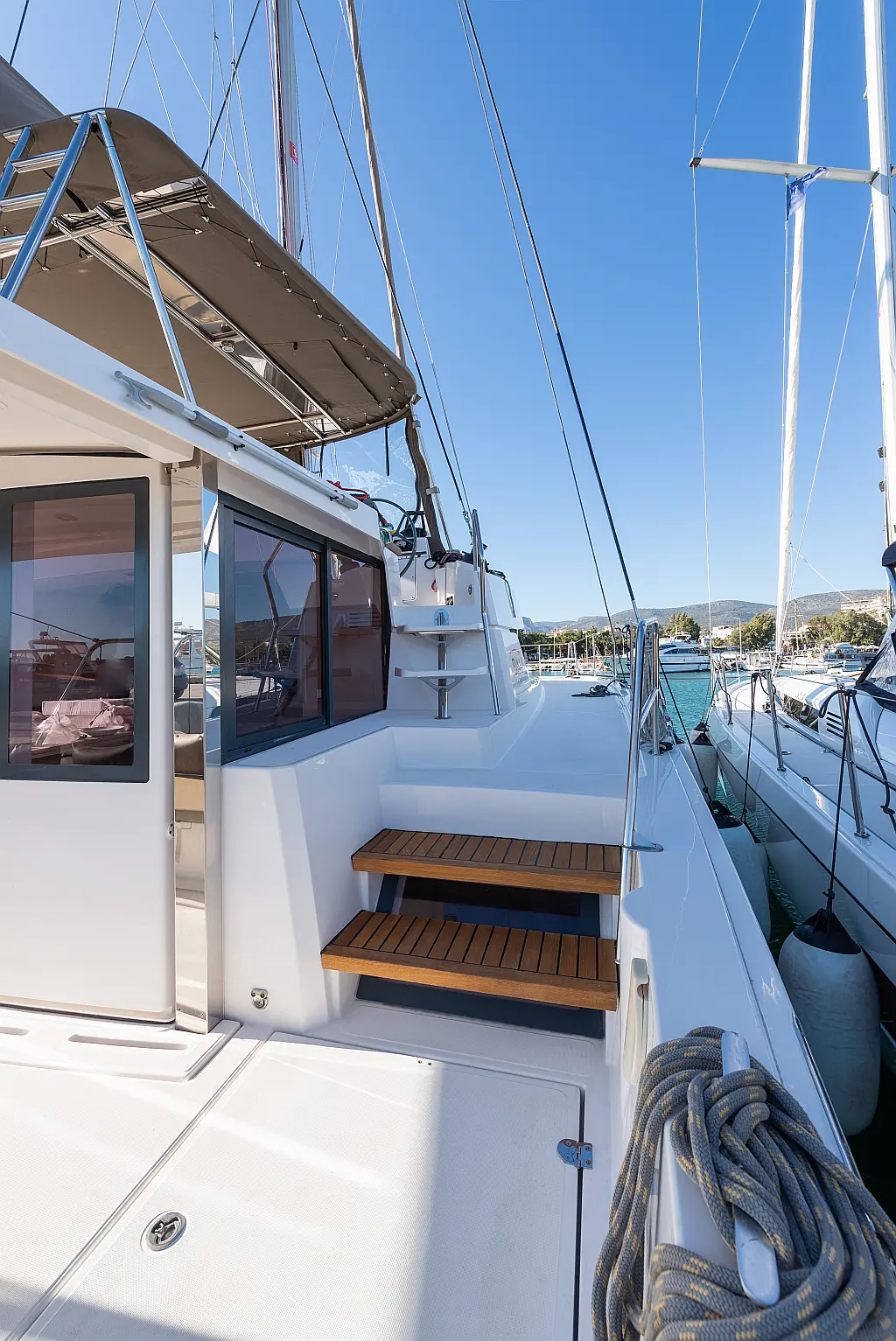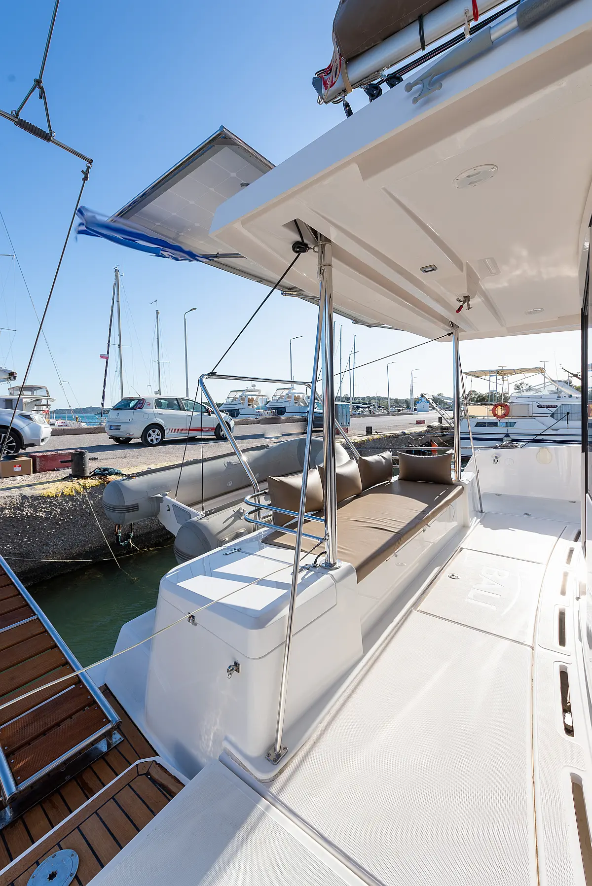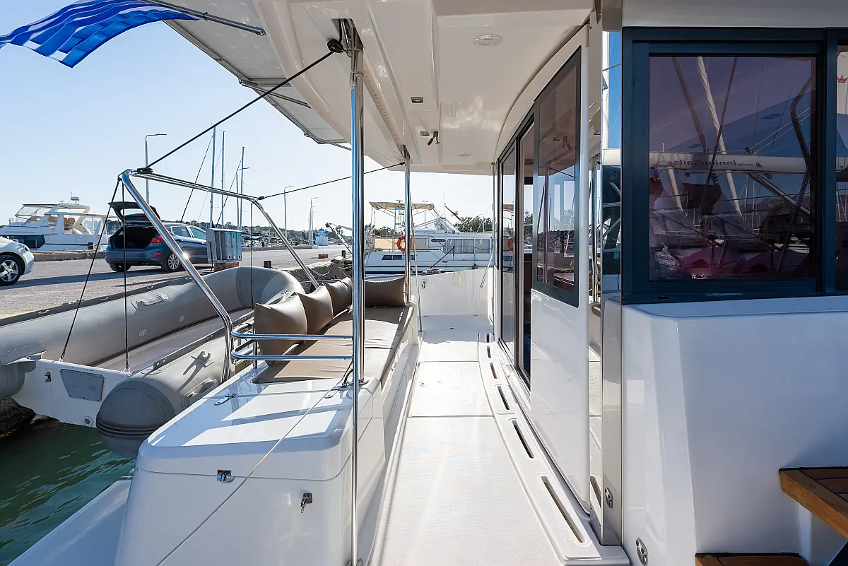 Holding tank, Bimini, Dinghy, Electric winches, Electric toilet, Air condition, Generator, Cockpit cushions, Sprayhood, Swimming platform, Solar Panels