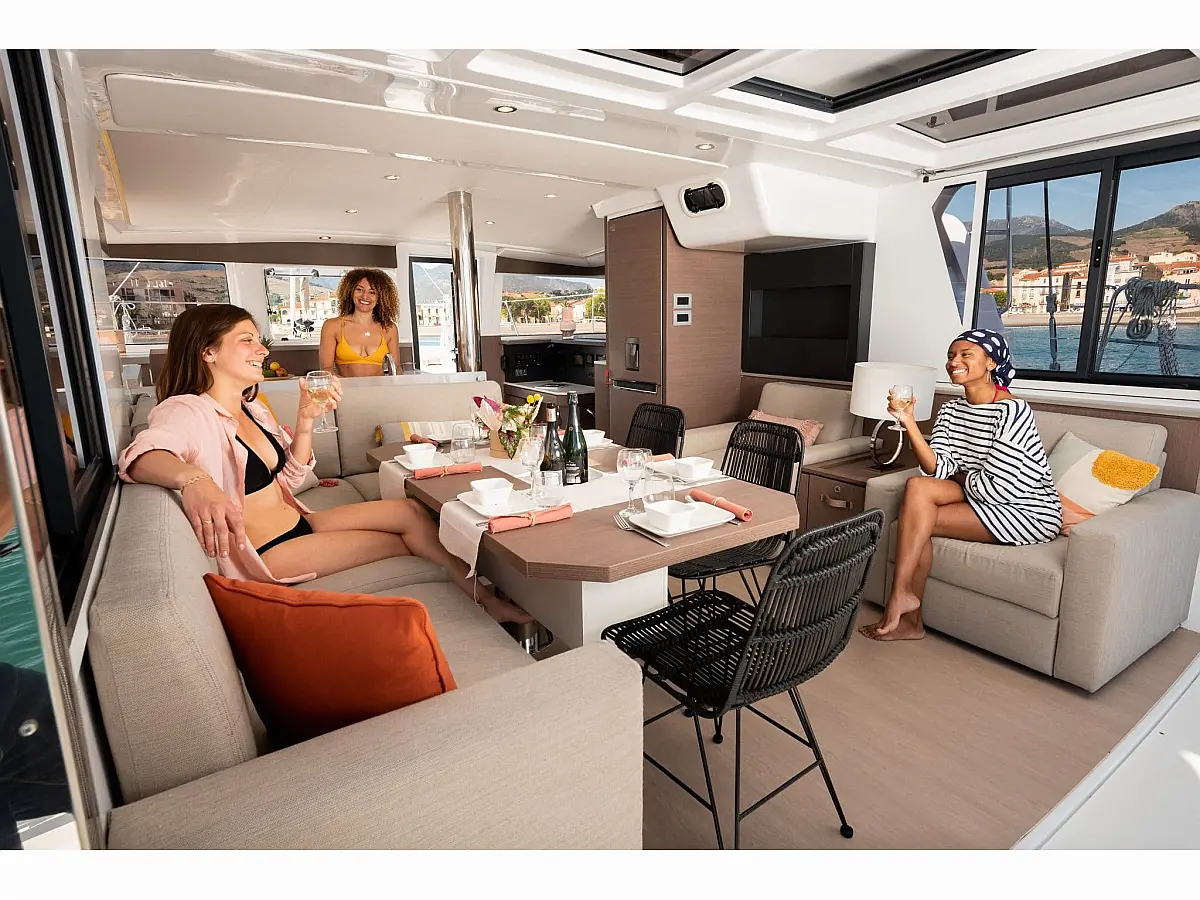 Air condition, Inverter, Solar Panels, Heating, Generator, Refrigerator, Electric toilet, Dinghy, Bimini, Cockpit cushions