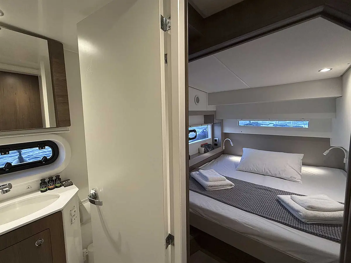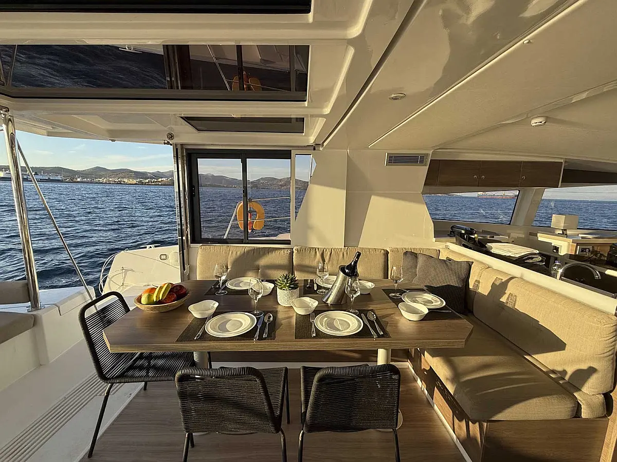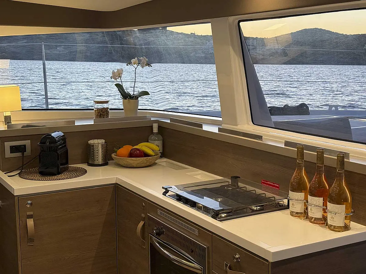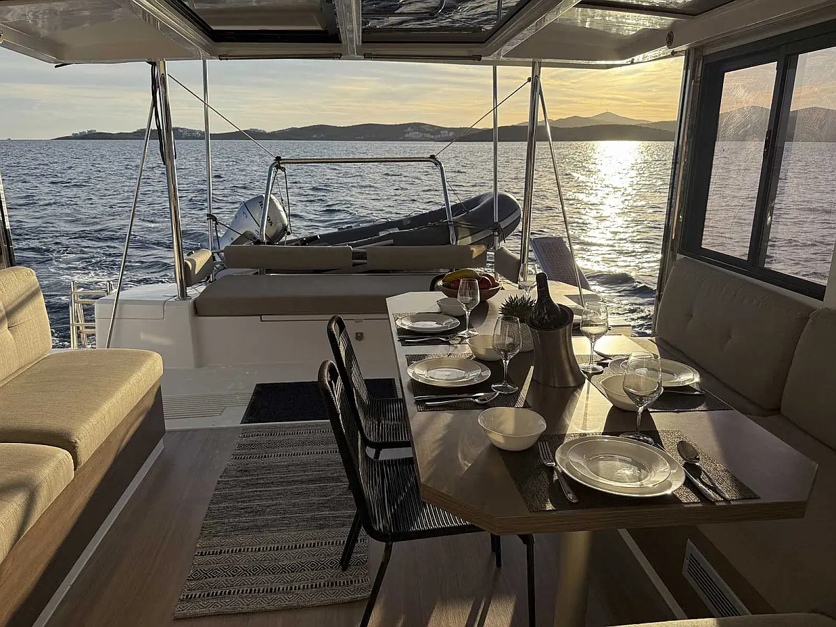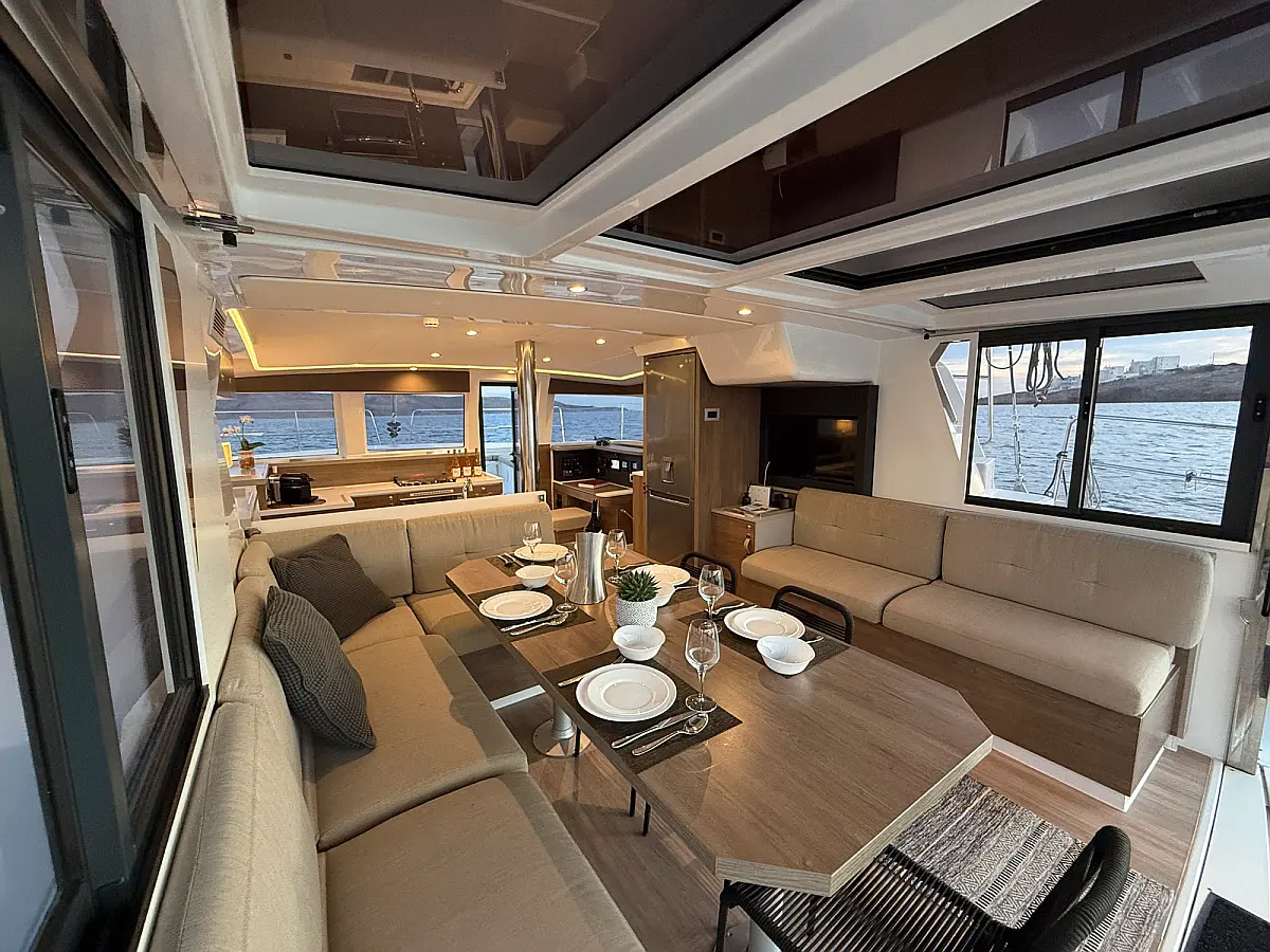 Cockpit speakers, Air condition, Heating, Coffee maker, Refrigerator, Water maker, Electric toilet, Bimini, Dinghy, Solar Panels, Electric winches, Generator, Inverter