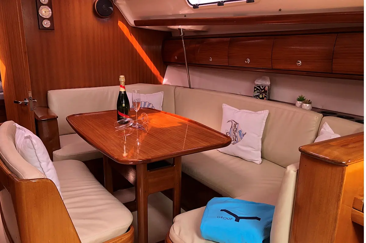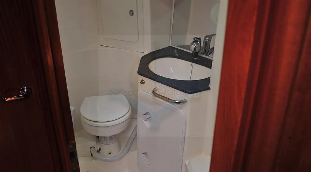 Teak Cockpit, Electric toilet, Refrigerator, Hydraulic gangway, Inverter, Solar Panels