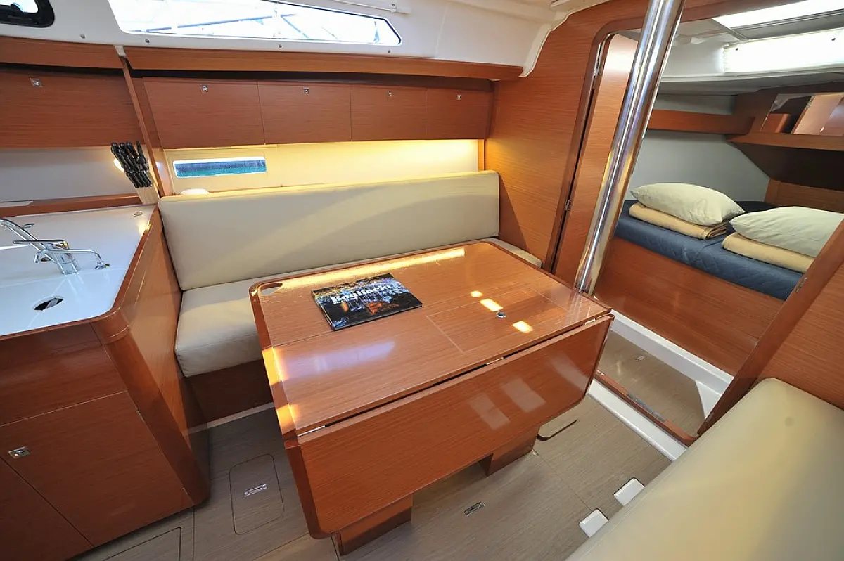 Cockpit cushions, Barbecue grill in cockpit, Teak Cockpit, Electric toilet, Refrigerator, Hydraulic gangway, Inverter, Swimming platform, Solar Panels
