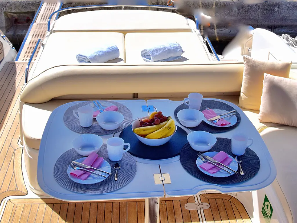 Refrigerator, Hydraulic gangway, Wi-Fi & Internet, Dinghy, Electric winches, Coffee maker
