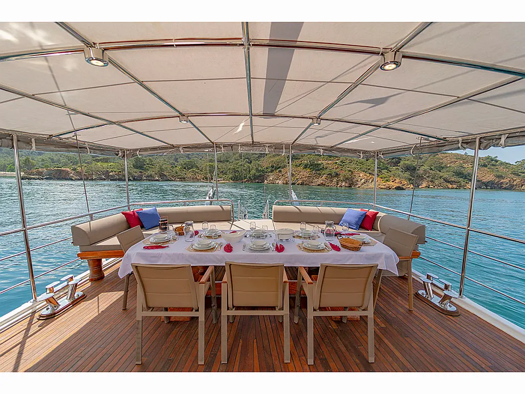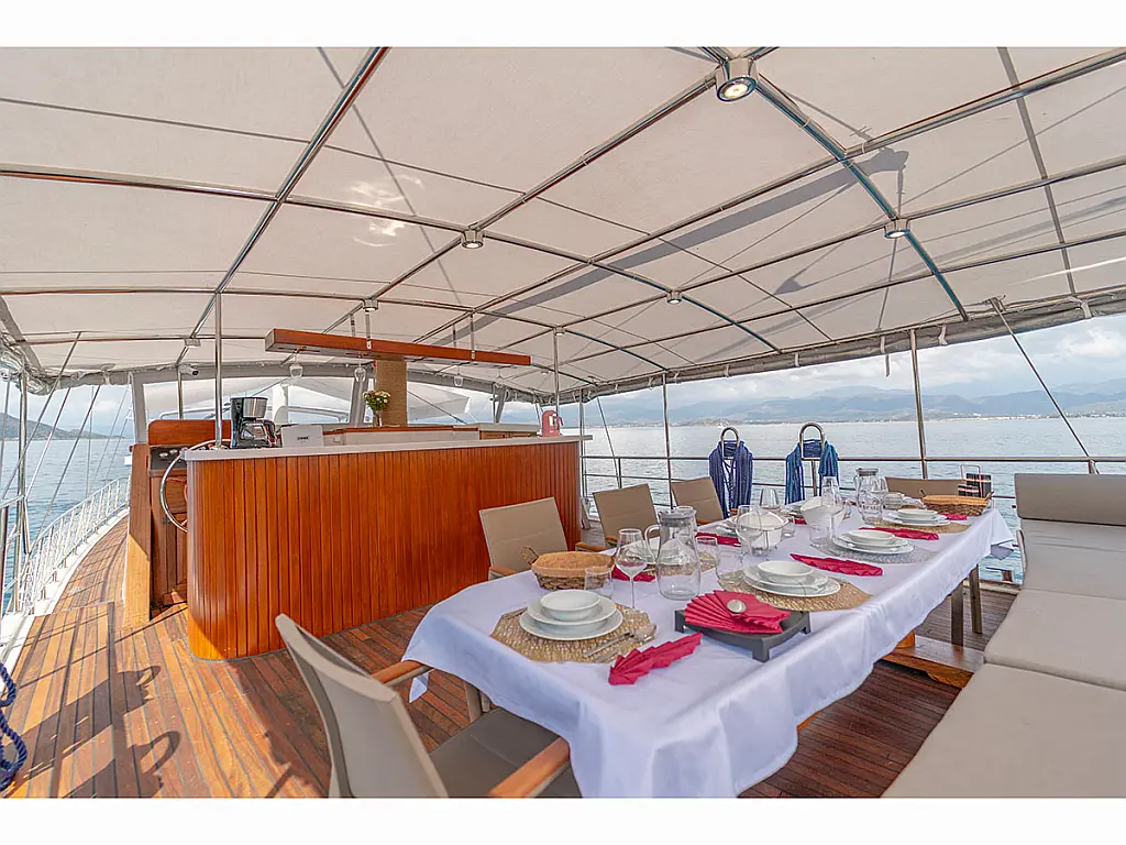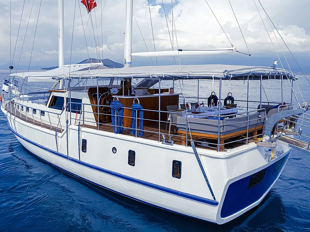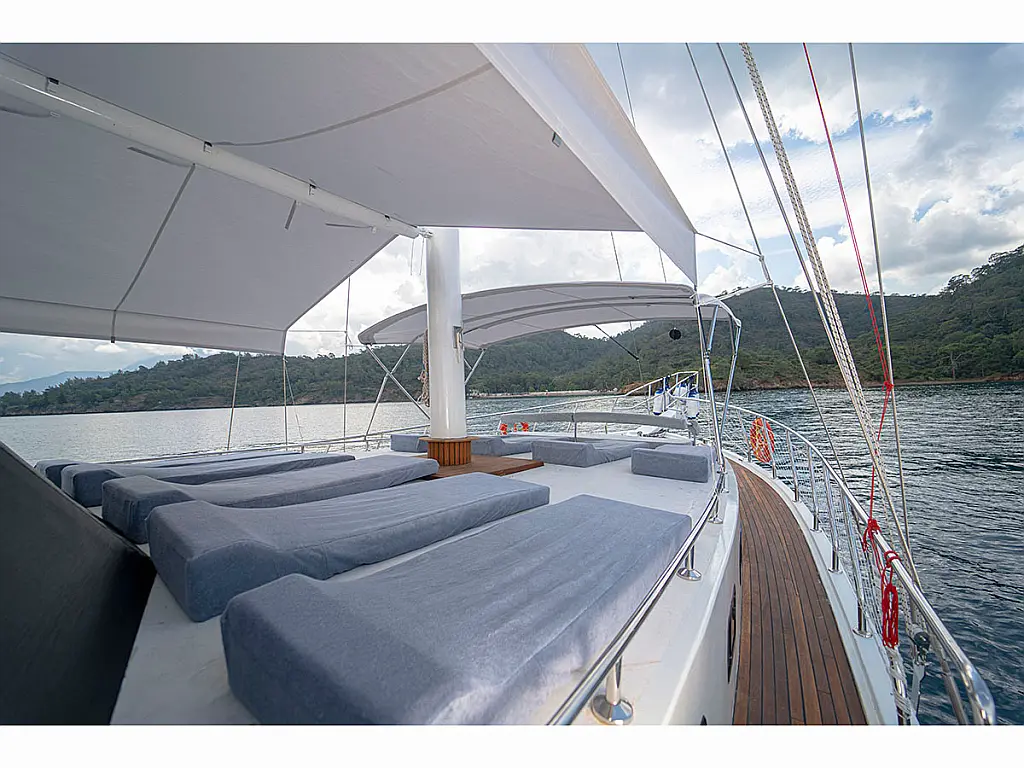 Teak Cockpit, Dinghy, Cockpit cushions, Coffee maker, Air condition, Generator, Electric toilet, Refrigerator, Teak deck