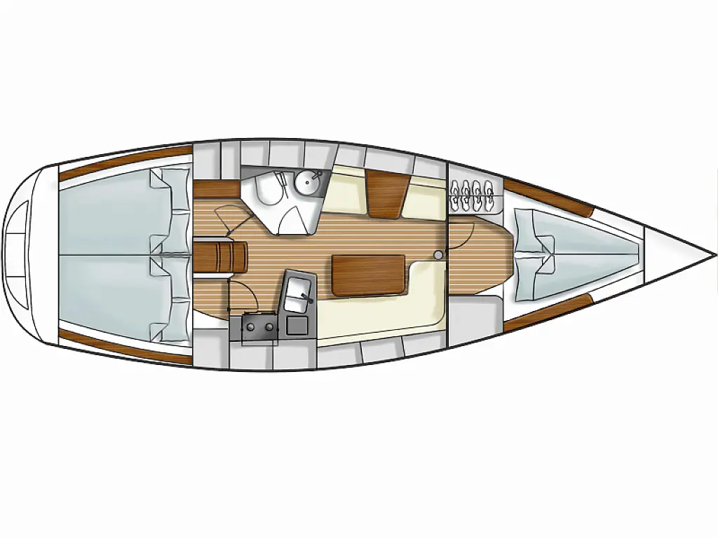 Refrigerator, Outboard engine, Dinghy, Bimini, Sprayhood, Solar Panels, Inverter