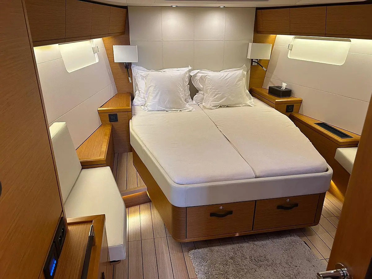 Air condition, Dinghy, Heating, Coffee maker, Outboard engine, Refrigerator, Solar Panels, Electric winches, Bimini, Inverter, Teak deck, Cockpit speakers
