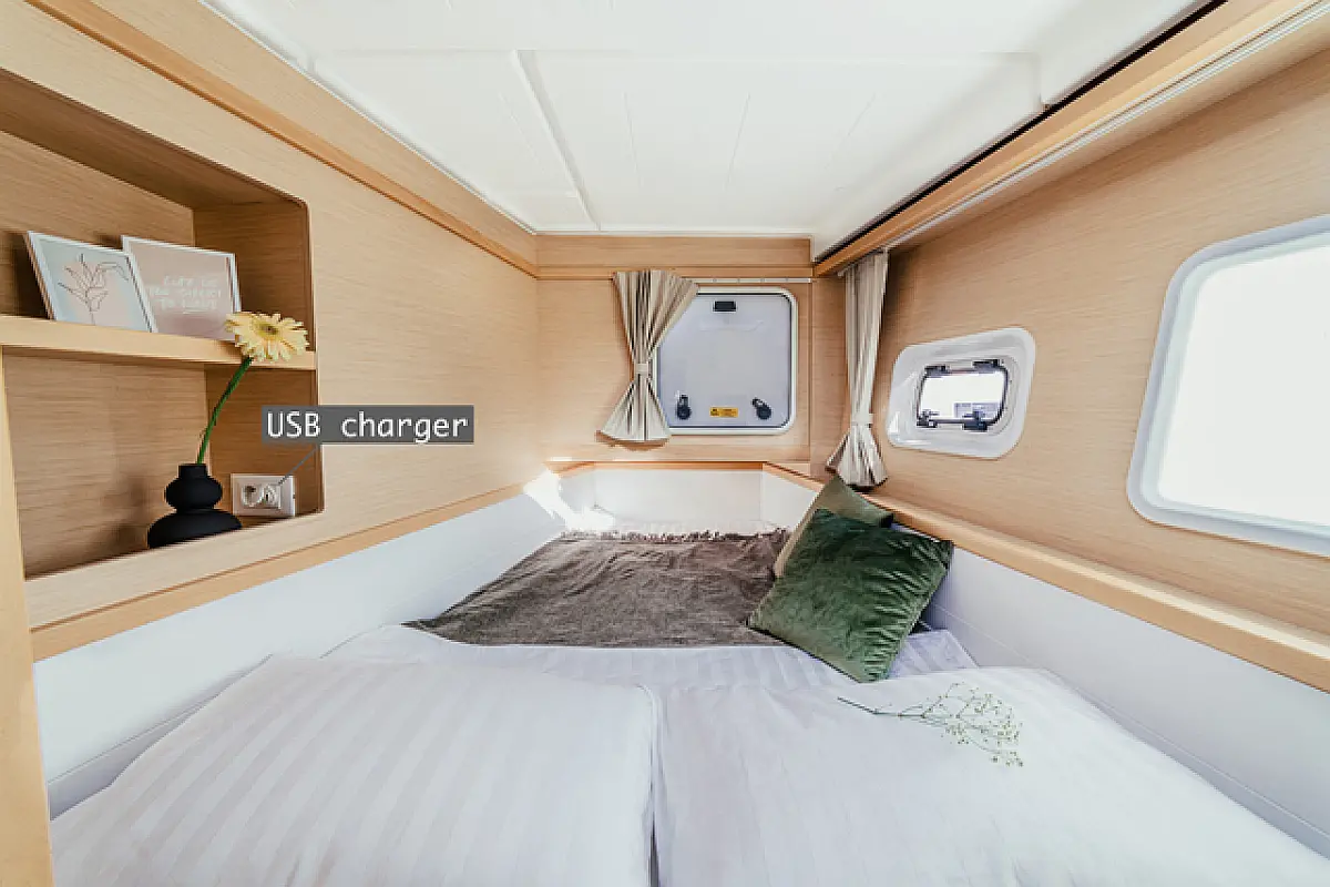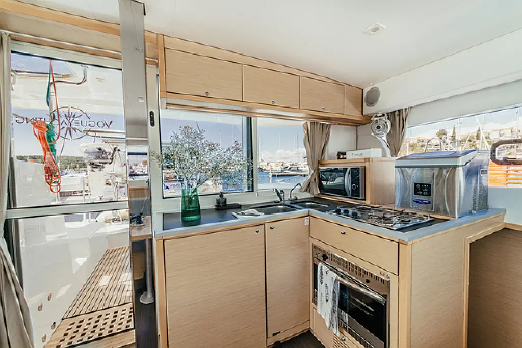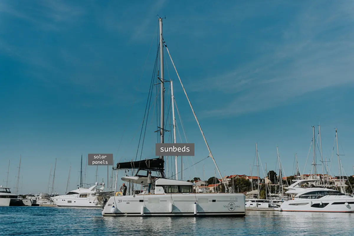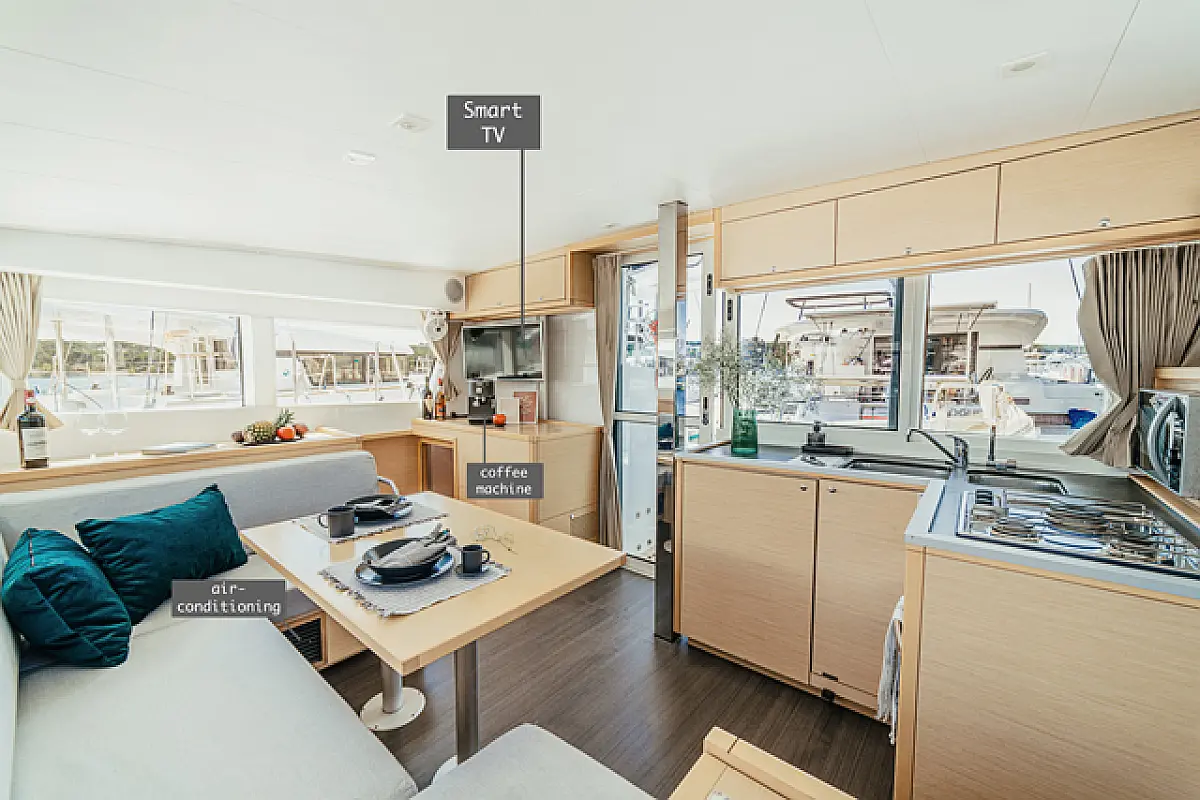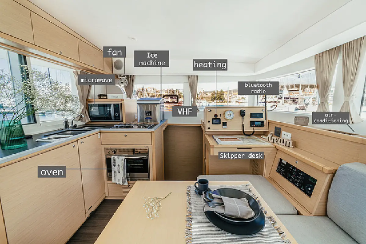 Air condition, Coffee maker, Cockpit cushions, Dinghy, Electric winches, Electric toilet, Ice maker, Holding tank, Inverter, Bimini, Solar Panels, Sprayhood, Teak Cockpit, Heating