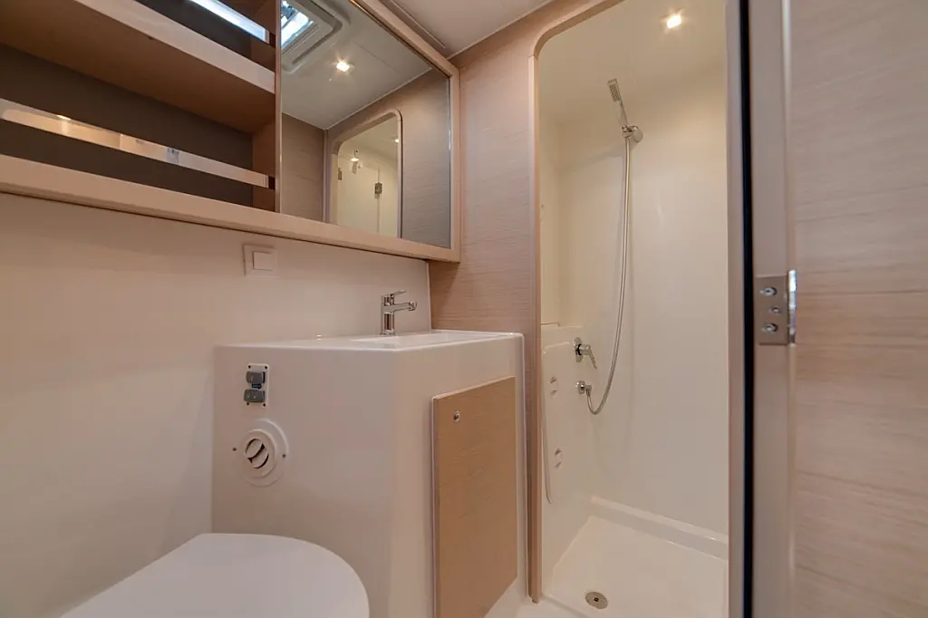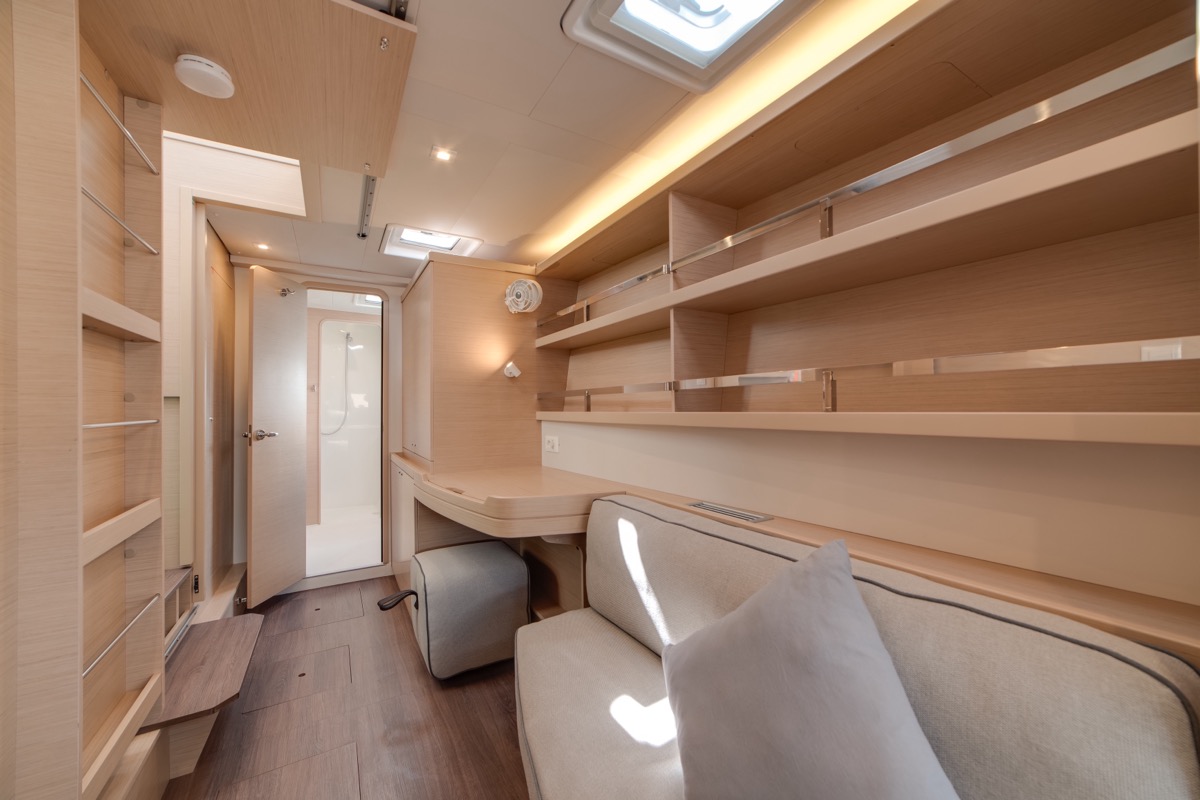 Cockpit cushions, Cockpit speakers, Coffee maker, Inverter, Generator, Teak Cockpit, Electric winches, Refrigerator, Electric toilet, Air condition, Water maker