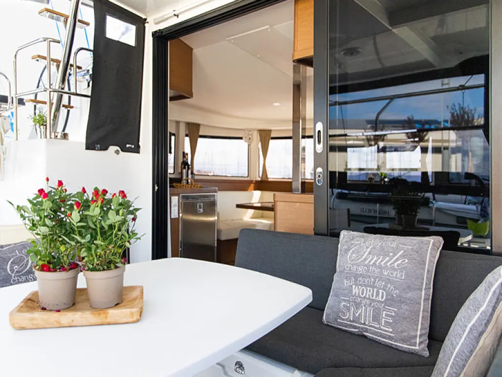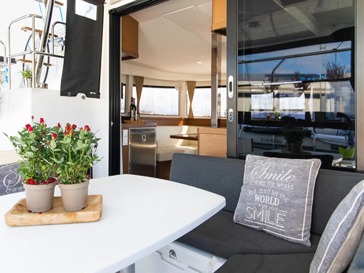 Teak deck, Solar Panels, Air condition, Generator, Refrigerator, Inverter, Cockpit cushions, Outboard engine, Bimini, Sprayhood, Water maker