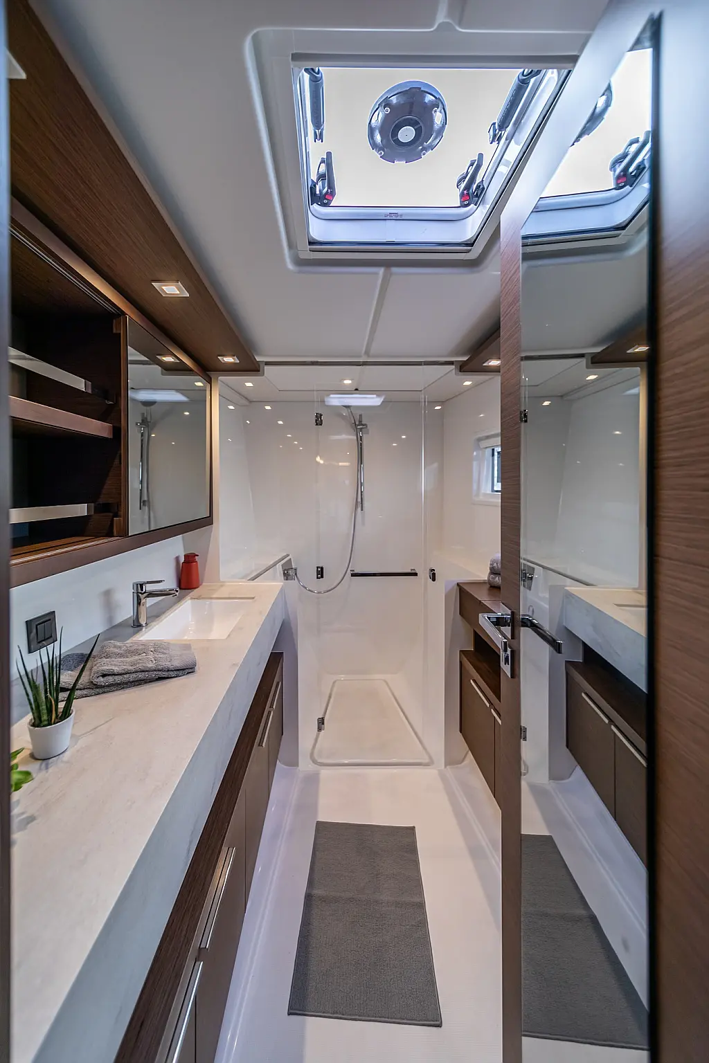 Wi-Fi & Internet, Coffee maker, Ice maker, Teak deck, Air condition, Bimini, Cockpit speakers, Refrigerator, Water maker, Generator, Inverter, Electric toilet, Electric winches, Cockpit cushions, Outboard engine, Barbecue grill in cockpit