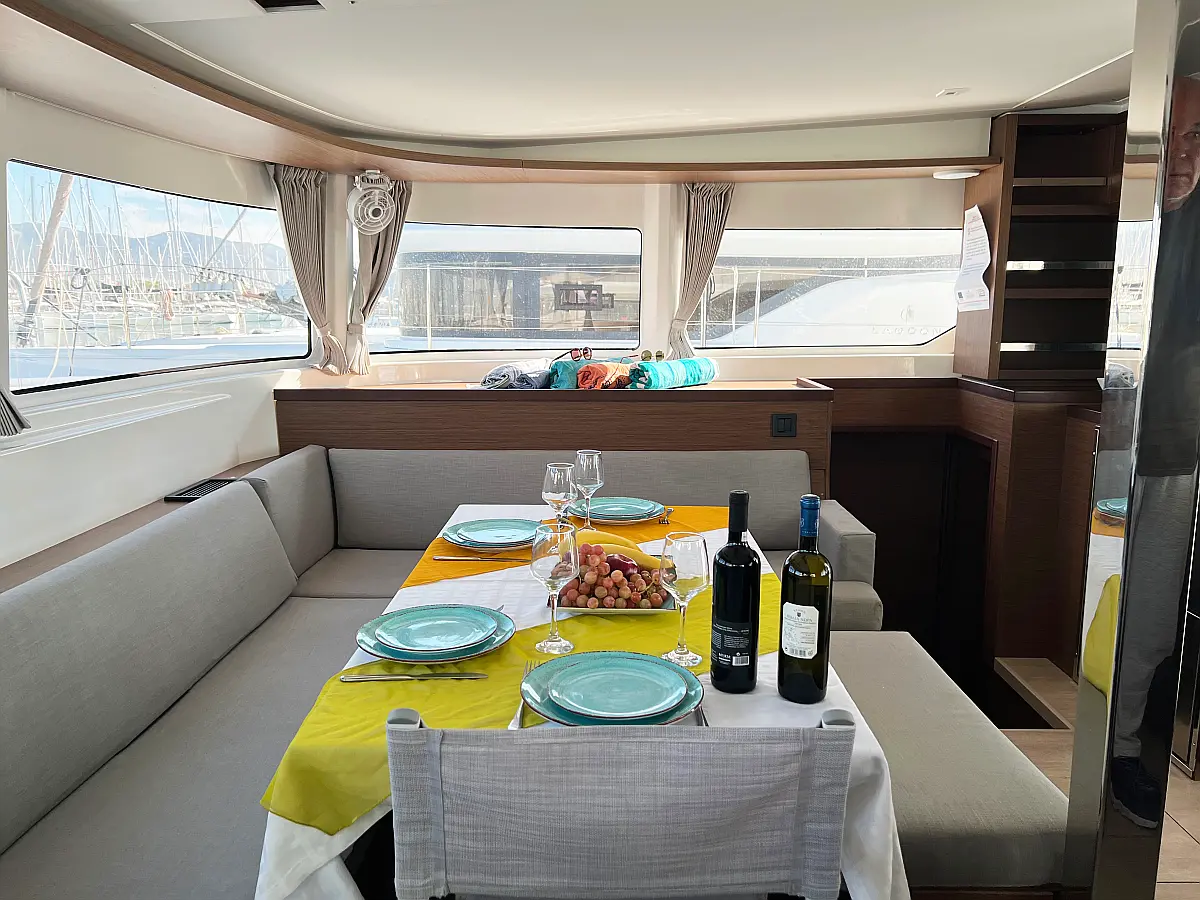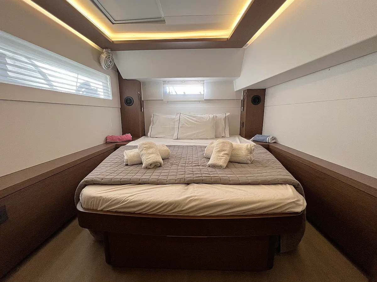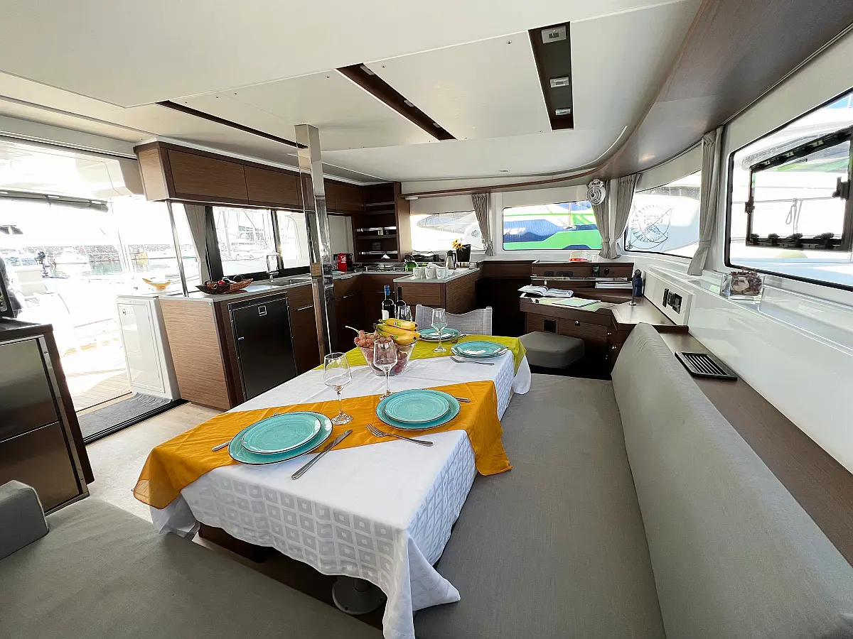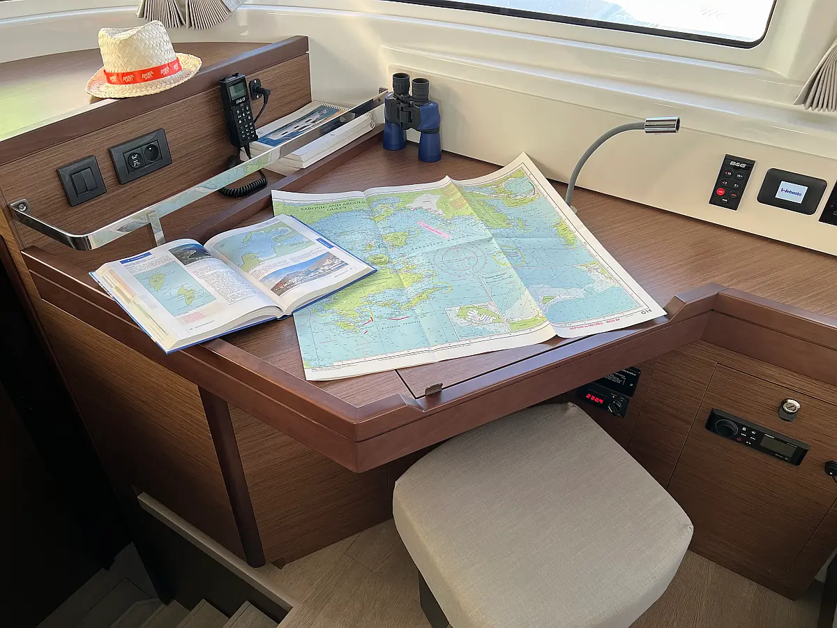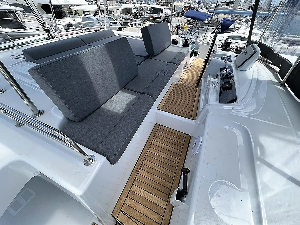 Air condition, Hydraulic gangway, Teak Cockpit, Bimini, Cockpit cushions, Dinghy, Outboard engine, Cockpit speakers, Generator, Inverter, Electric winches, Electric toilet, Water maker, Refrigerator, Coffee maker, Sprayhood