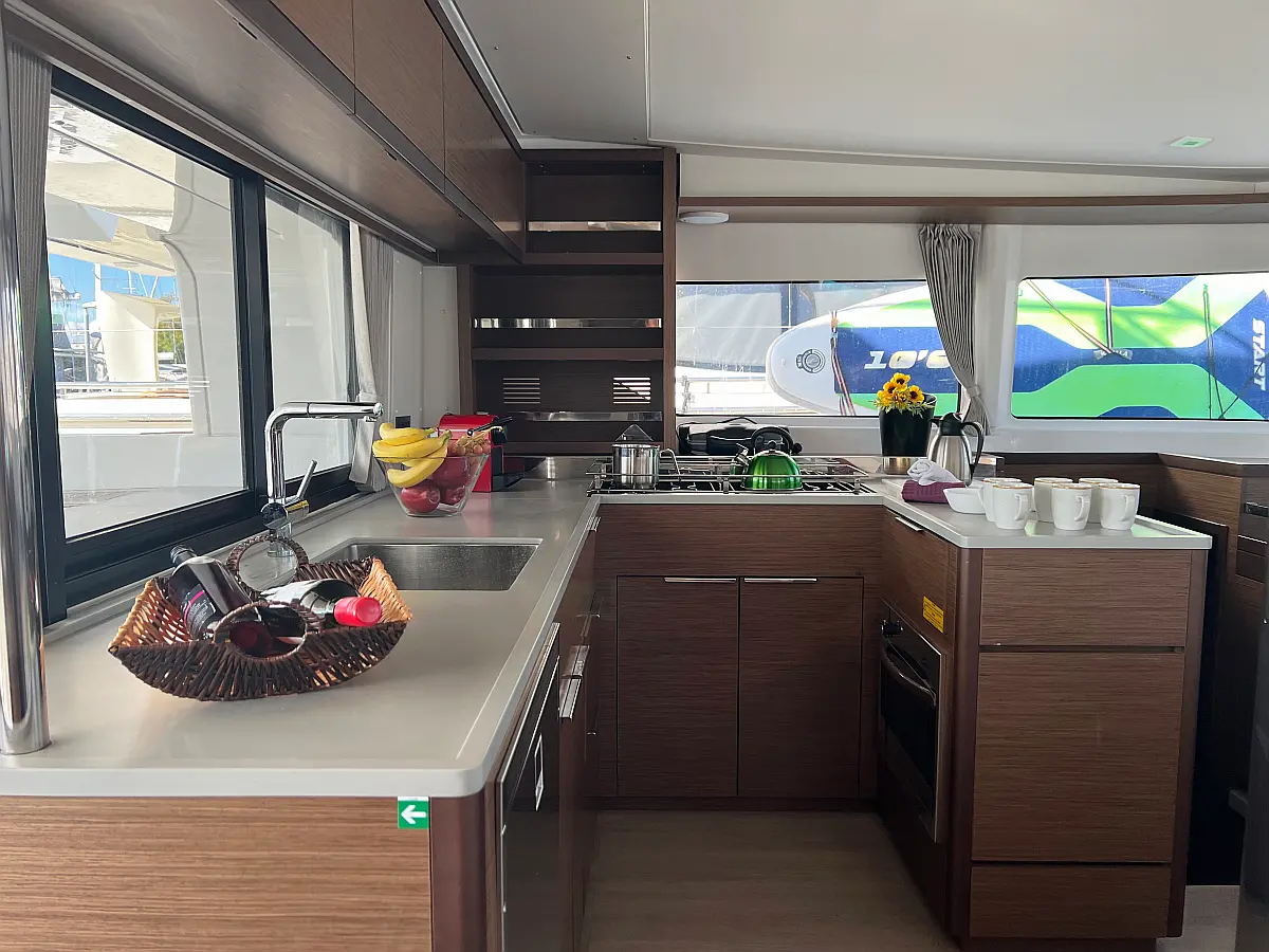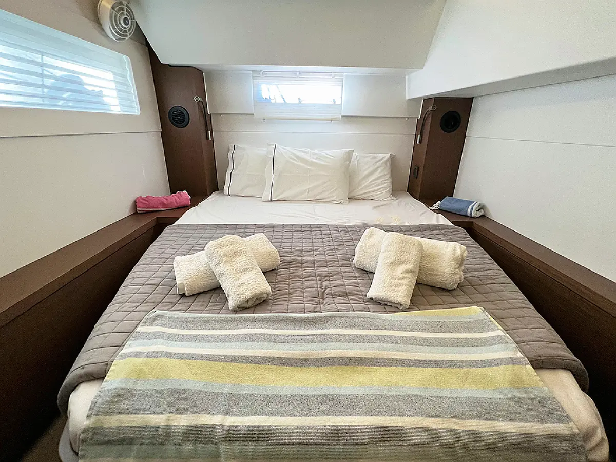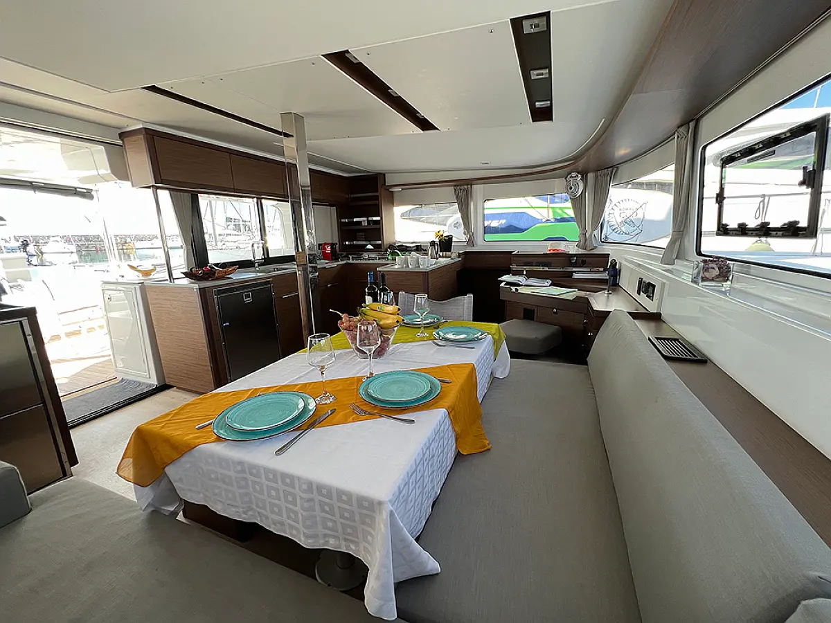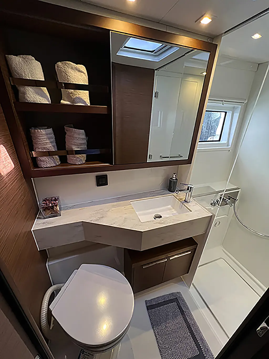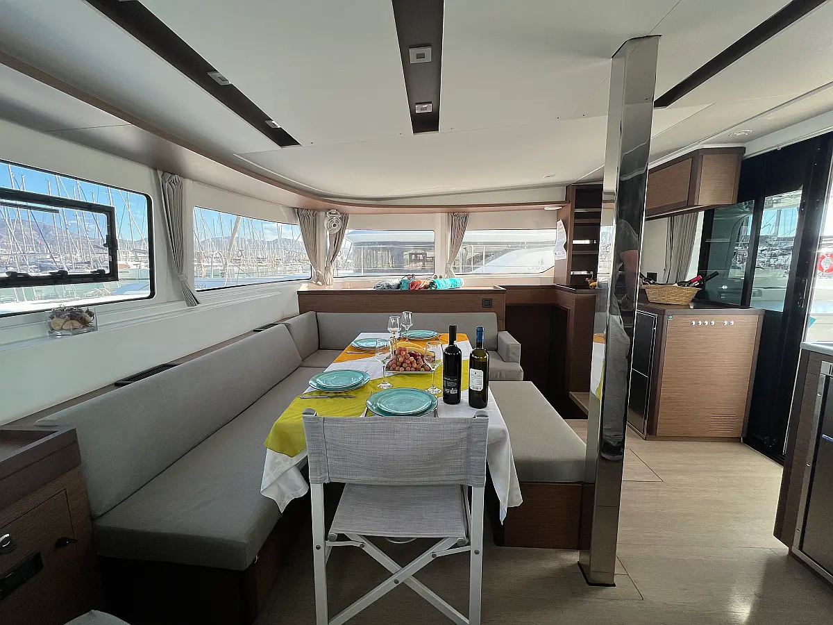 Air condition, Hydraulic gangway, Teak Cockpit, Bimini, Cockpit cushions, Dinghy, Outboard engine, Cockpit speakers, Generator, Inverter, Electric winches, Electric toilet, Water maker, Refrigerator, Coffee maker, Sprayhood