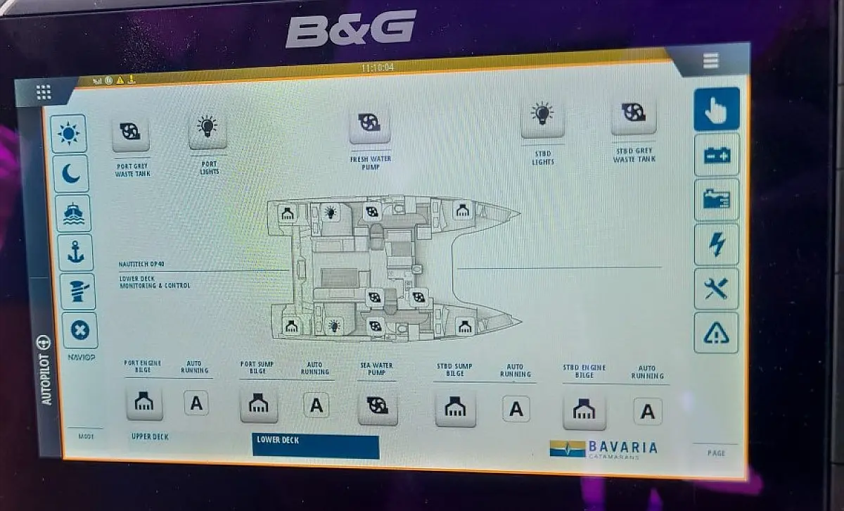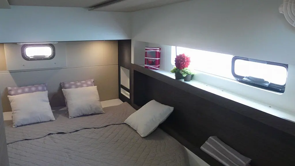 Swimming platform, Holding tank, Bimini, Cockpit speakers, Dinghy, Heating, Refrigerator, Sprayhood, Wi-Fi & Internet, Solar Panels, Electric winches, Coffee maker, Electric toilet