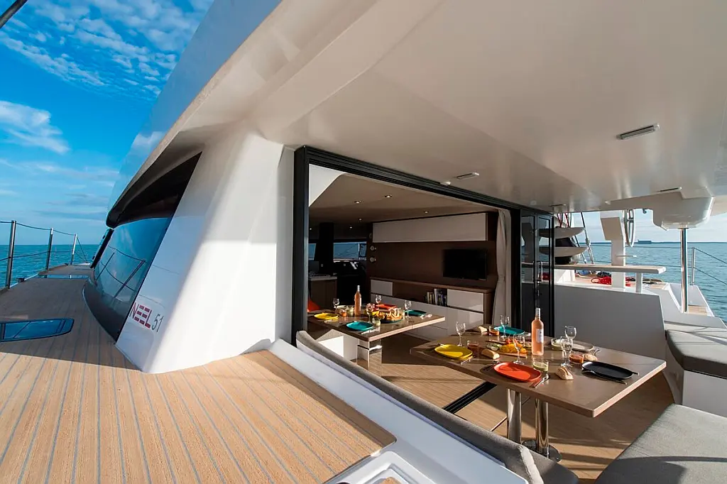 Bimini, Barbecue grill in cockpit, Water maker, Inverter, Dinghy, Holding tank, Solar Panels, Electric toilet, Air condition, Generator