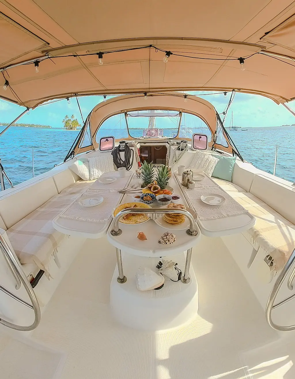 Bimini, Sprayhood, Cockpit cushions, Dinghy, Refrigerator, Coffee maker, Solar Panels, Generator